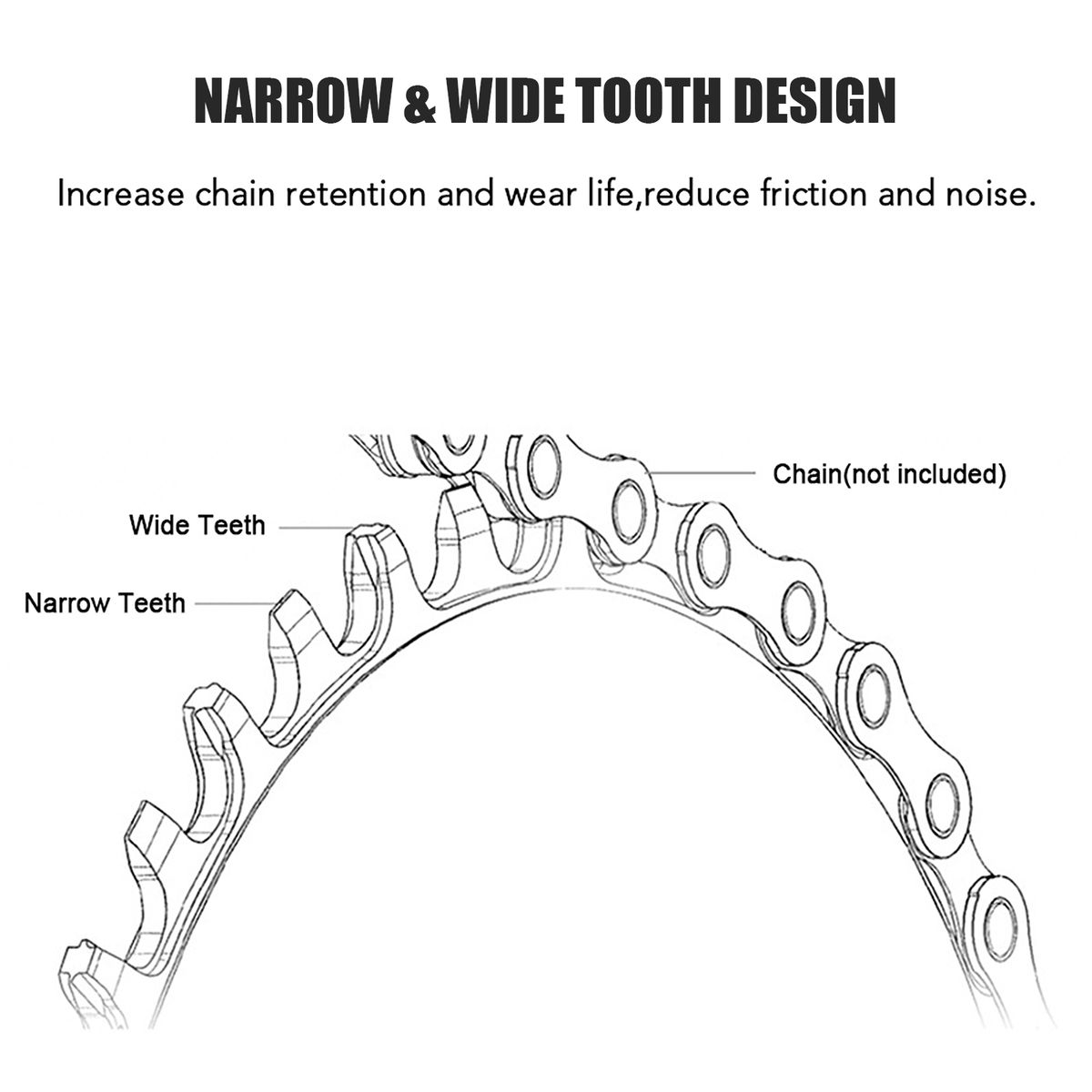 Narrow amp;wide teeth increase chain retention and wear life,reduce friction and noise.
