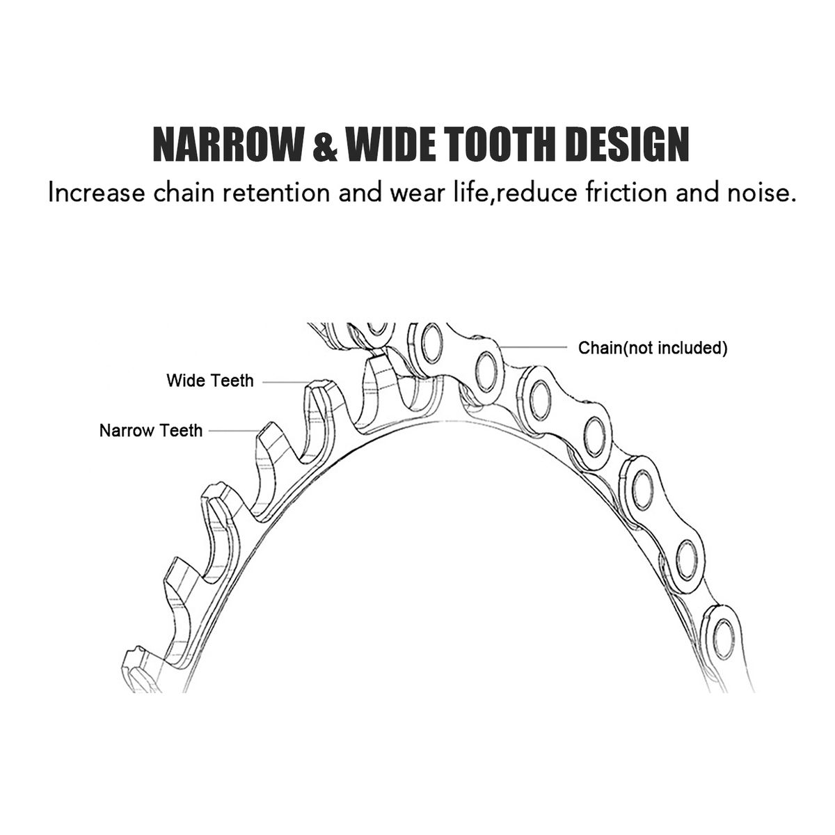 Narrow amp;wide teeth increase chain retention and wear life,reduce friction and noise.
