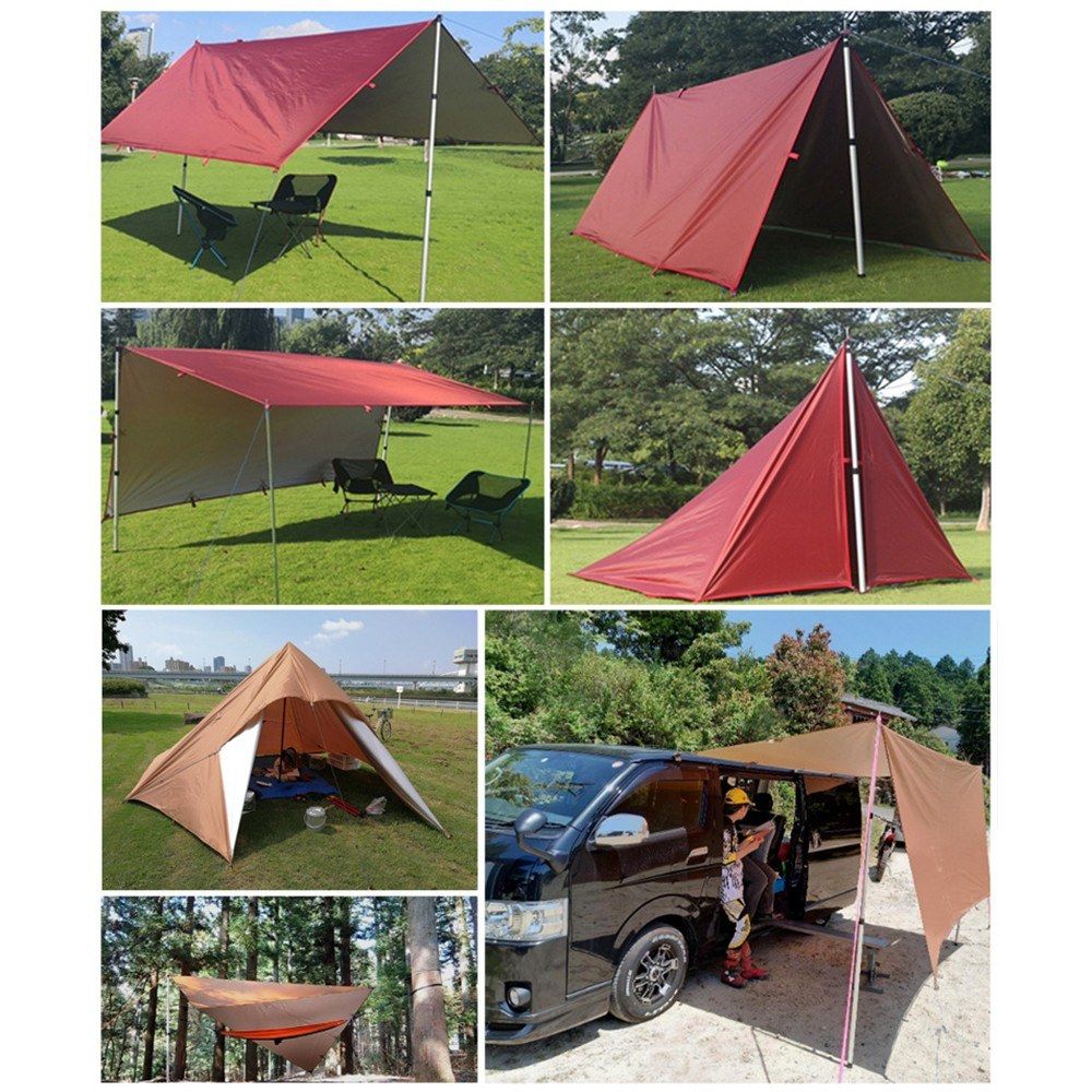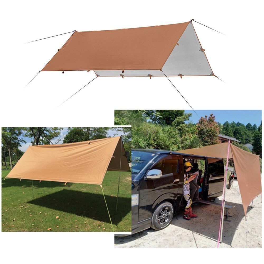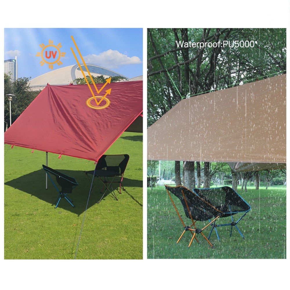 This awning is made from polyester fabric with silver coating, blocking more than 90% of the ultraviolet rays; Strong PU5000mm waterproof coating, weather-resistant. Small packaging volume, large developed area. Great for camping, picnic,party and other outdoor activities.