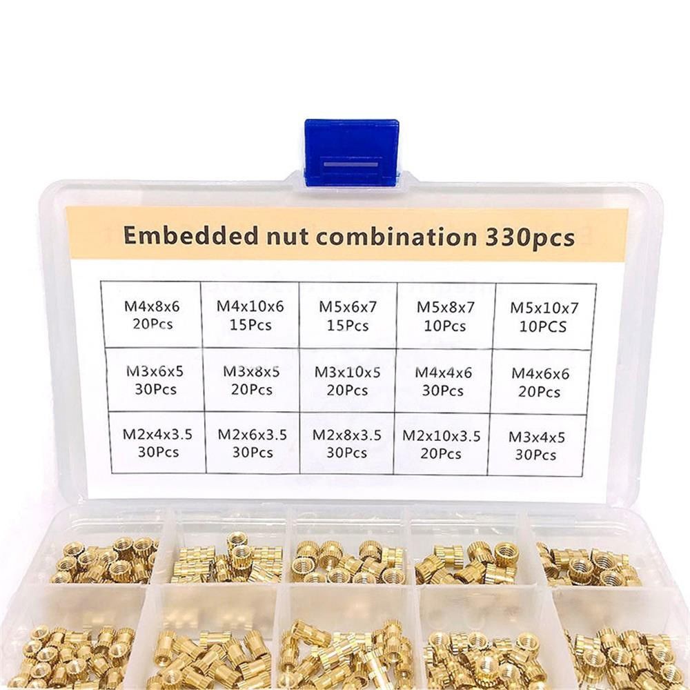 330pcs Brass knurled nuts, come in various sizes to meet different needs.