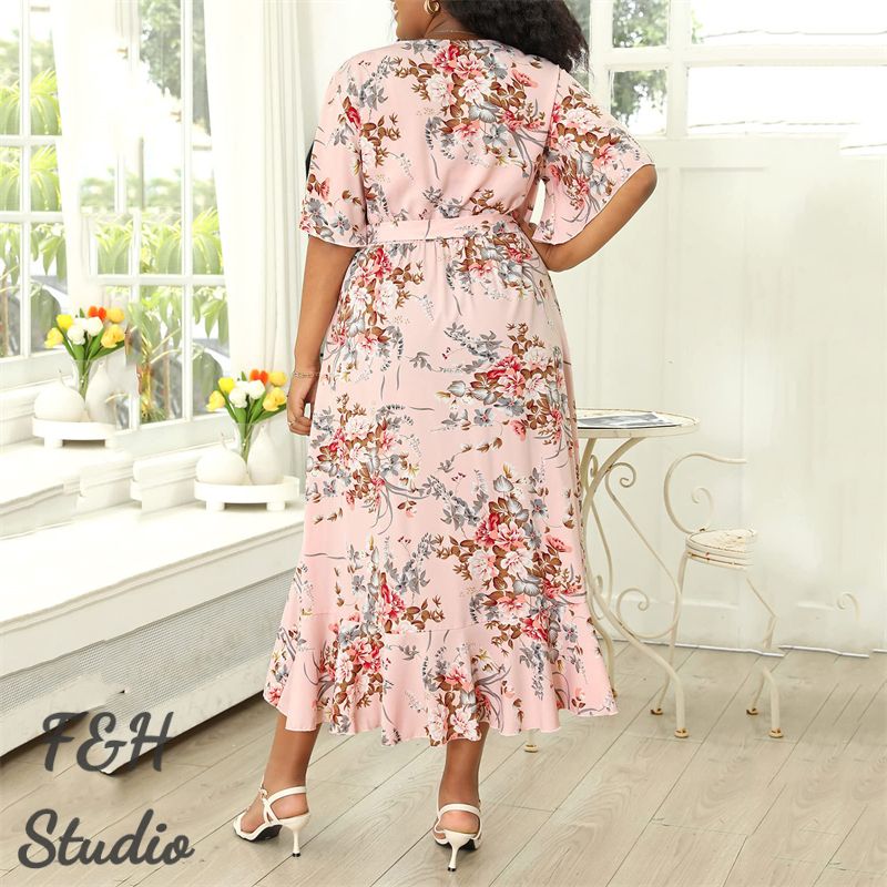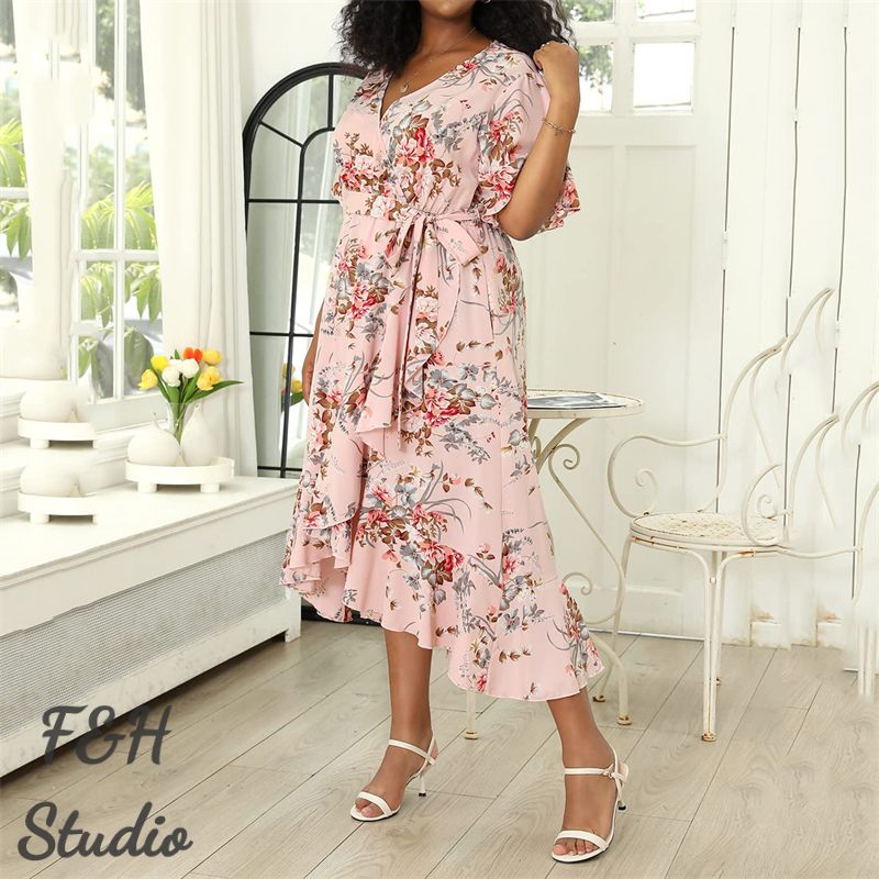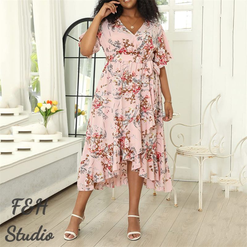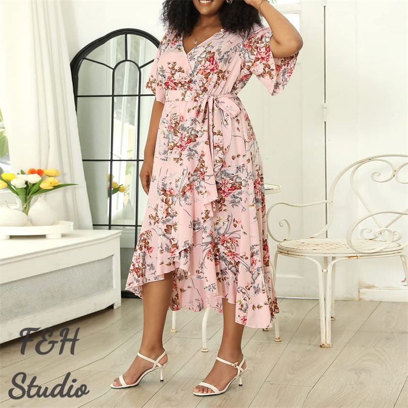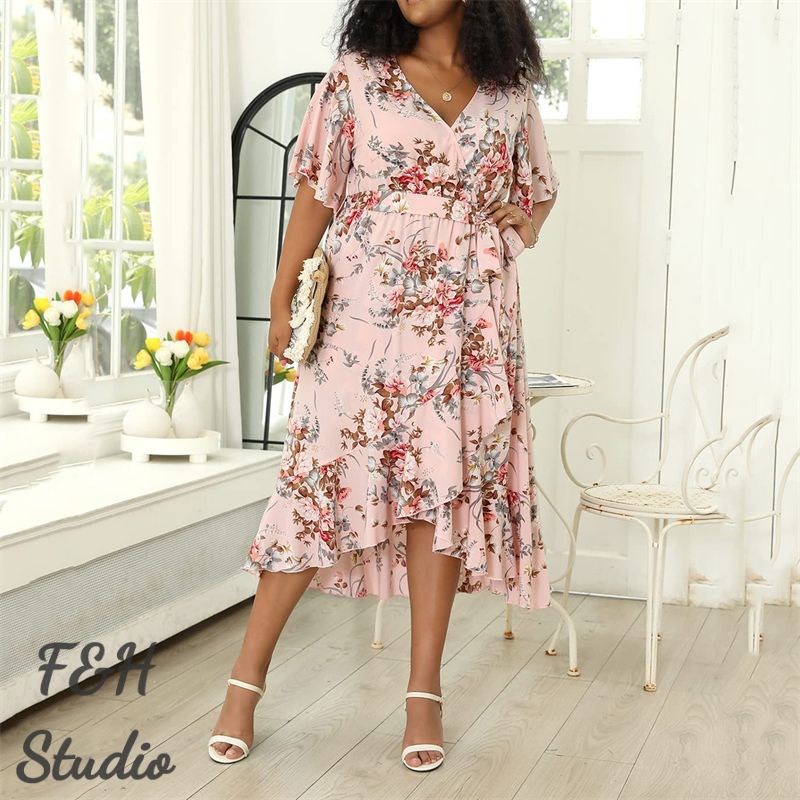 The Plus Size Women's Dress comes with several great features. The dress is made from a soft and comfortable fabric that is perfect for wearing on warmer days. The dress features a v collar design, which adds a touch of elegance to the overall look. The dress also comes with short sleeves, which are a popular trend in fashion right now. Additionally, the dress has a loose fit, which ensures that it is comfortable to wear all day long. The dress is available in a range of sizes, making it versatile and suitable for women of all sizes.