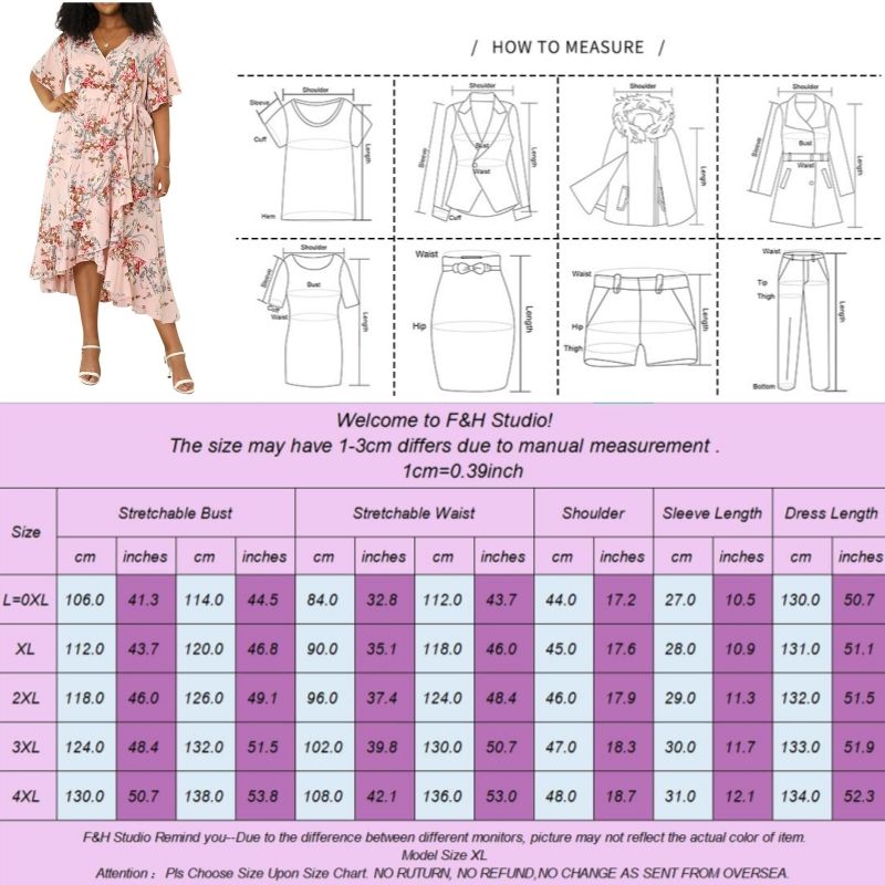 FQA:1. Q: Why the item haven't shipped out? A: After you place the order, We will ship the item to the rehmie warehouse within 48 hours as soon as possible, and then rehmie warehouse will send the item to you. If you find the logistics status is"to be shipped", it may be because the rehmie warehouse has not yet been shipped. Please don't worry. 2. Q: How can I choose the size? A:Please refer to the size chart and select the appropriate size according to your actual size.If you are not sure what size to choose, please call me. 3. Pls take note that all the clothes can not be return or exchange.4. All dimensions are measured by hand, there will be 2-3cm reasonable deviations. (1cm=0.39 inches). Pictures are only samples for reference. Due to the differences in monitor settings, the colors shown in the photograph may not correspond 100% to those in the items themselves. 5.For transportation needs, the cloth that you've received will have a fold phenomenon. Please don't worry, this fold situation will disappear after the first time you clear or ironing.