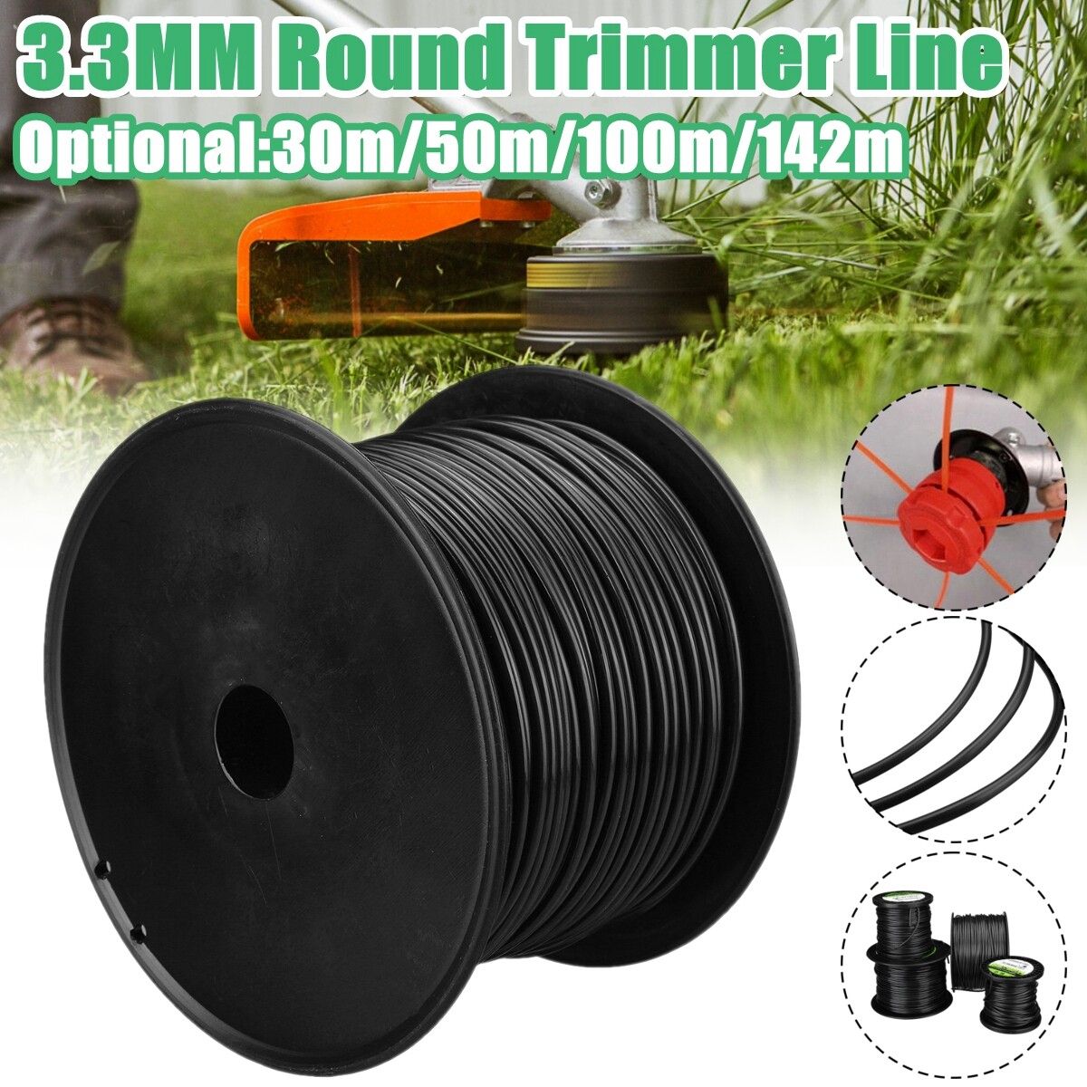 3.3mm Heavy Duty Nylon Round Trimmer Line Brushcutter Rope 30m/50m/100m/142m