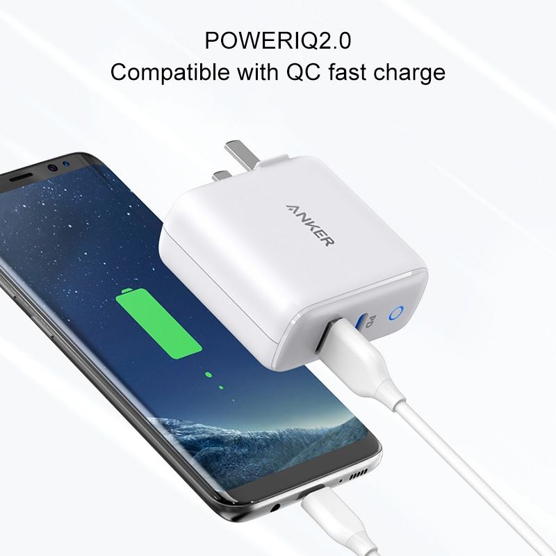 33W PowerPort PD USB-C / Type-C Interface + PowerIQ 2.0 USB-A Interface Wall Charger, US Plug(White)