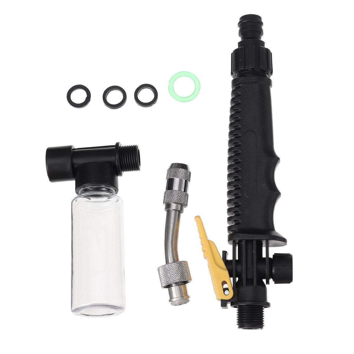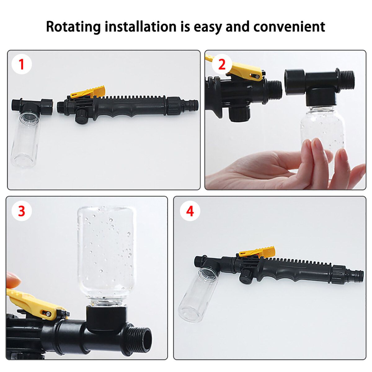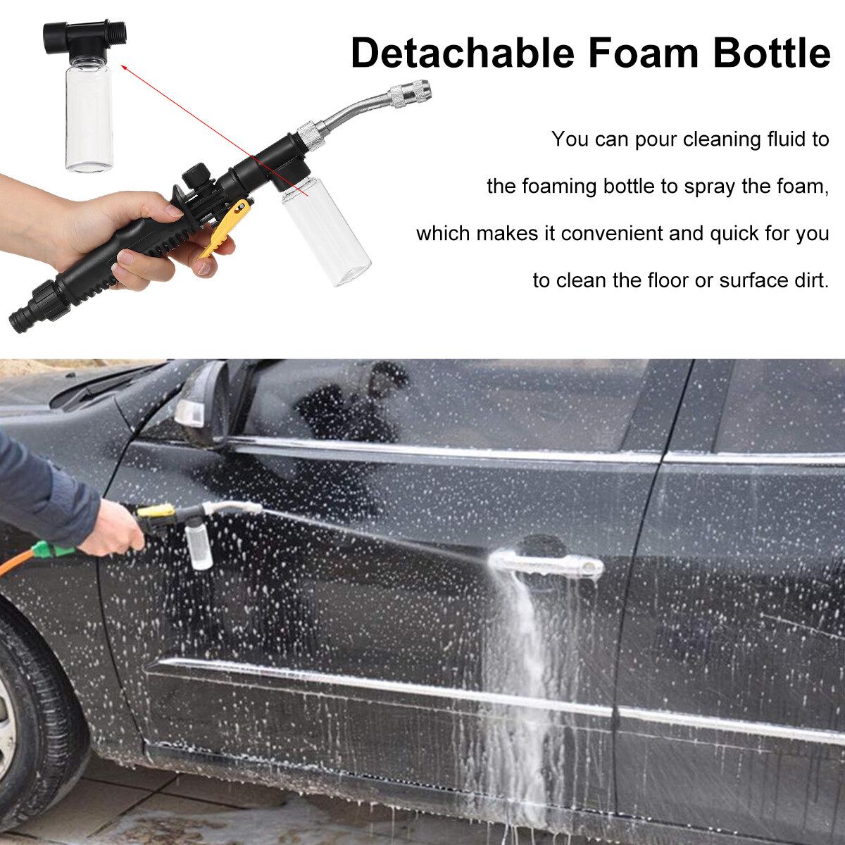 Features:1. The long handle and the handle are connected by a thread, which can be separated, easy to carry and easy to install.2. Multi-function high- water machine with good spray effect and good quality.3. It can be used to clean cars, water plants and flowers on gardens and lawns, clean sidewalks / lanes, clean floors / balconies / glasses and any inaccessible places, and even be used for your pets and dogs'shower To meet your different needs of watering and cleaning, just enjoy the fun of washing, cleaning and watering.4. With a foam bottle, you can add the items you need in it, which is very convenient and fast.