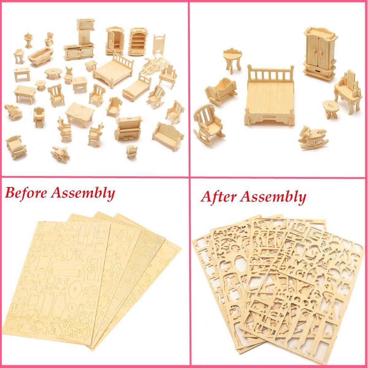 34 Pcs 3D DIY Wooden Miniature Furniture Model
