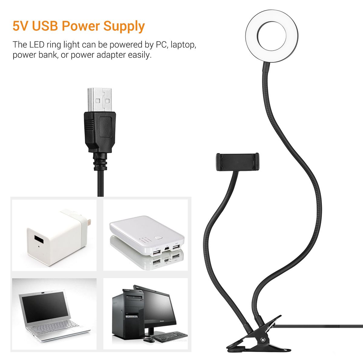 Features:【Mini LED Ring Light】 3.5inch mini ring light, features 3 lighting modes(warm light/mixed light/cold light), and each lighting mode supports 10 levels of adjustable brightness.