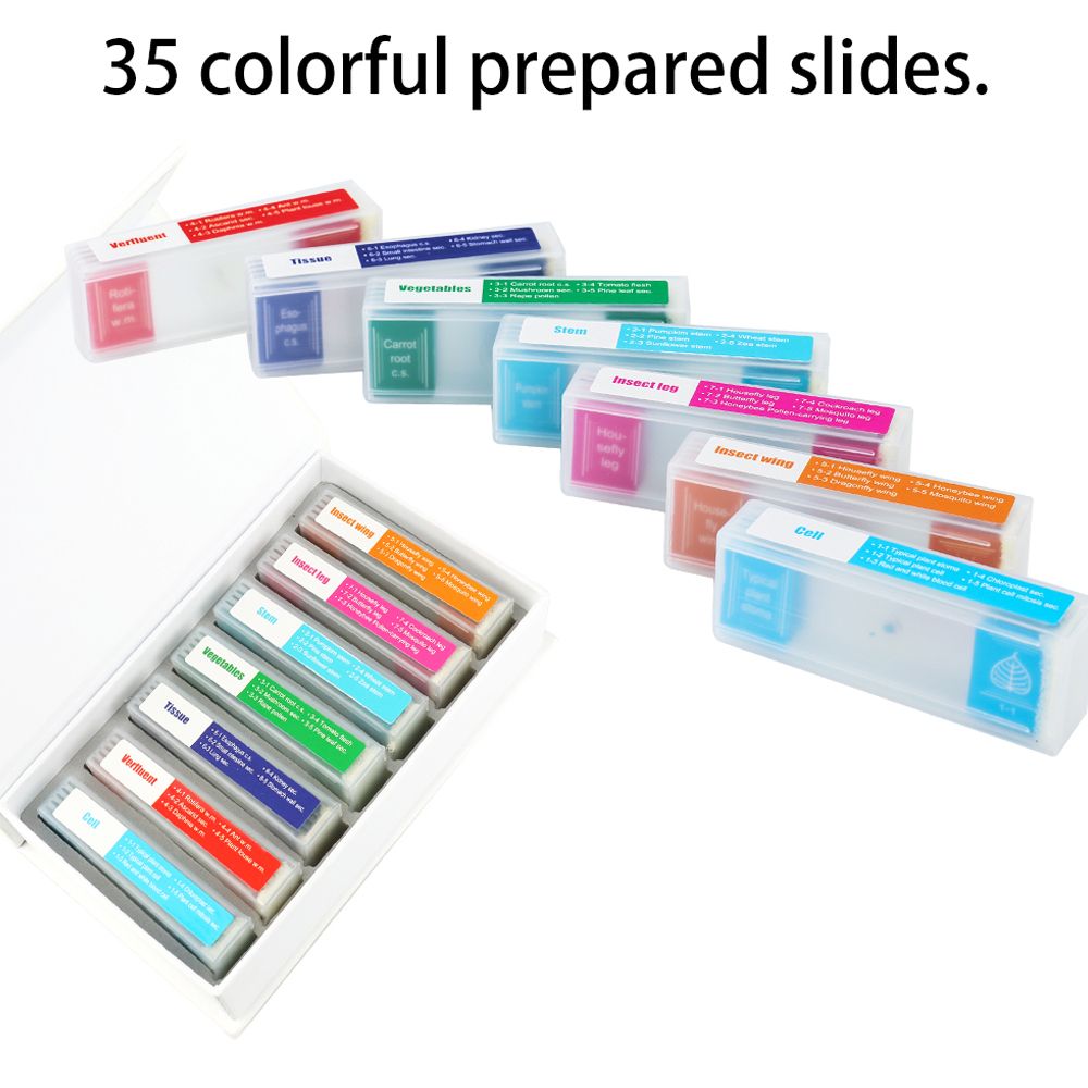 35 colorful prepared slides. You can accompany children to observe the magical biological world. It can cultivate children\'s interests in seeking knowledge.