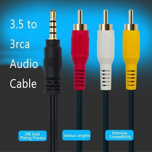 --Designed to connect 3.5mm male plug to 3RCA Audio Video female.