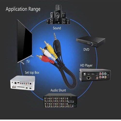 3.5mm Stereo Aux Jack to 2 RCA cable enables you to connect a i-Phone/i-Pad, MP3 player, TV, Car Radio, Mac-Book, smartphone MP3, tablets or laptop with the 3.5mm aux Jack to Stereo Receiver, Amplifier, Speaker, Turntable, AV receiver with 2 RCA.