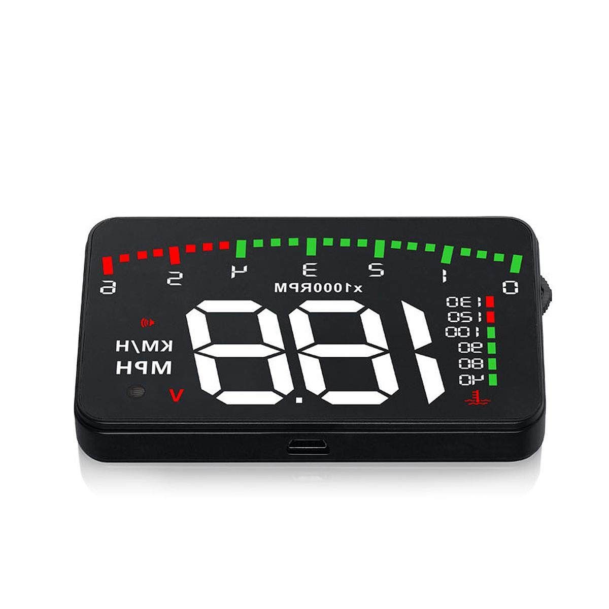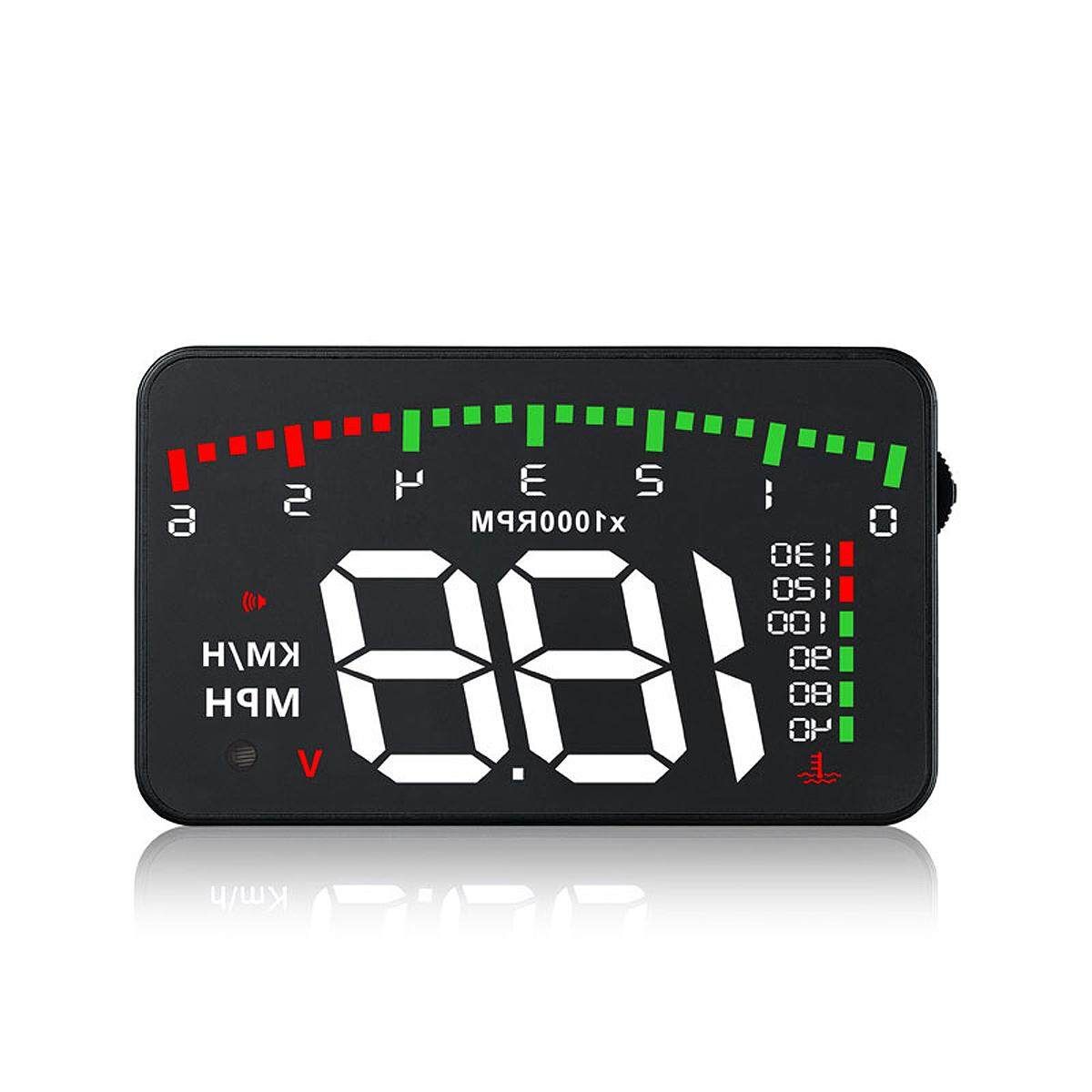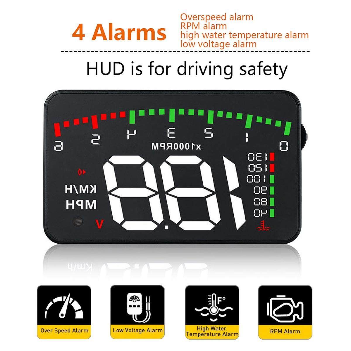 HUD short for Head Up Display.It displays driving datas on the front windshield such as speed,RPM,voltage,single driving distance etc on
