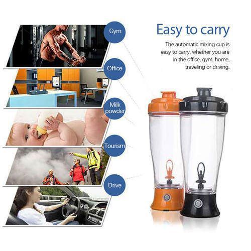 The automatic mixing cup is easy to carry, whether you are in the office, gym, home, travel or driving.Product details1. The bottle cap is designed with a new safety bottle mouth to avoid finger pollution, and the adjustable lifting ring is convenient and practical2.The battery power supply is efficient and energy-saving. Two No. 5 batteries can meet the daily needs3.Tritan transparent material cup body selected material, no BPA, safe and reliable4. Built in strong motor, high-power pure copper motor, surging power, fast shaking