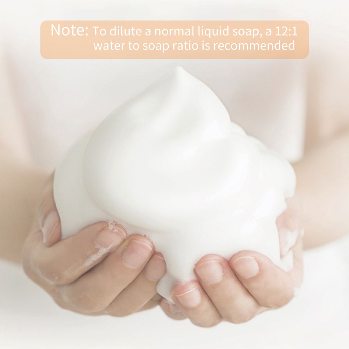 [Foam Mode]The dispenser produces the right amount of dense, rich foam that cleanses your hands better and requires less water to rinse off than washing directly with regular soap.