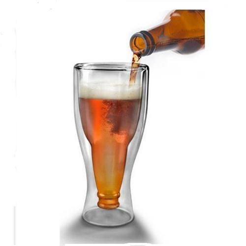 350ML Double Layer Beer Glass Creative Flip Beer Cup Transparent Art Wine Glass For Bar Restaurant Brandy Vodka Cocktail-Beer Steins