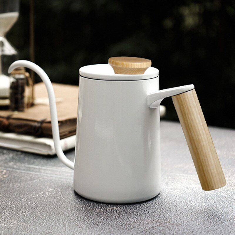 350ML/600Ml Stainle Steel Swallow Mouth Coffee Pot With Solid Wood Handle Long Mouth Drip Spout Coffee Acceories