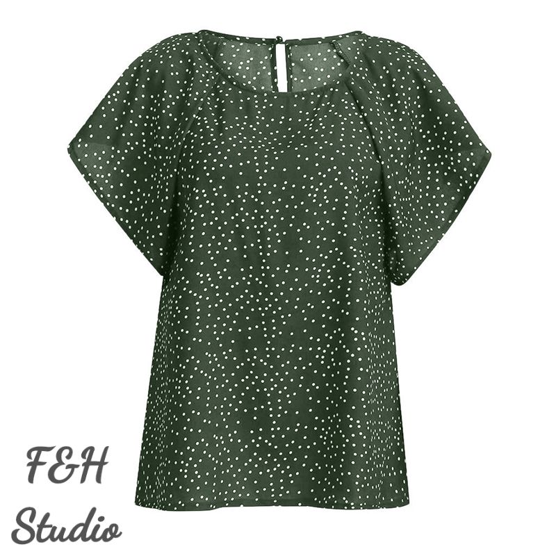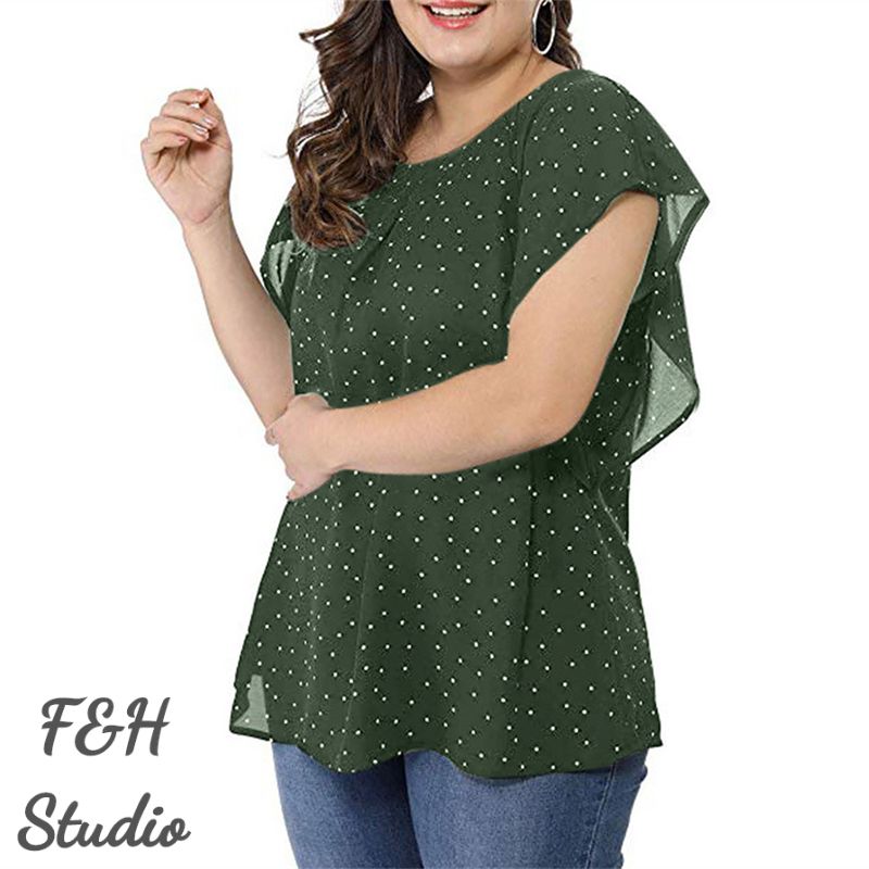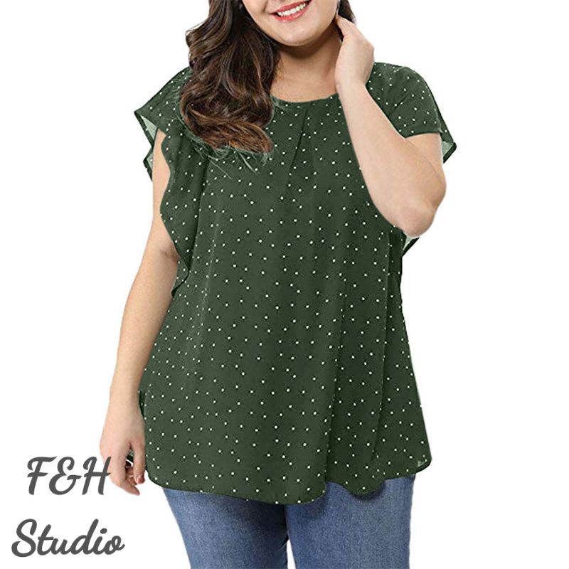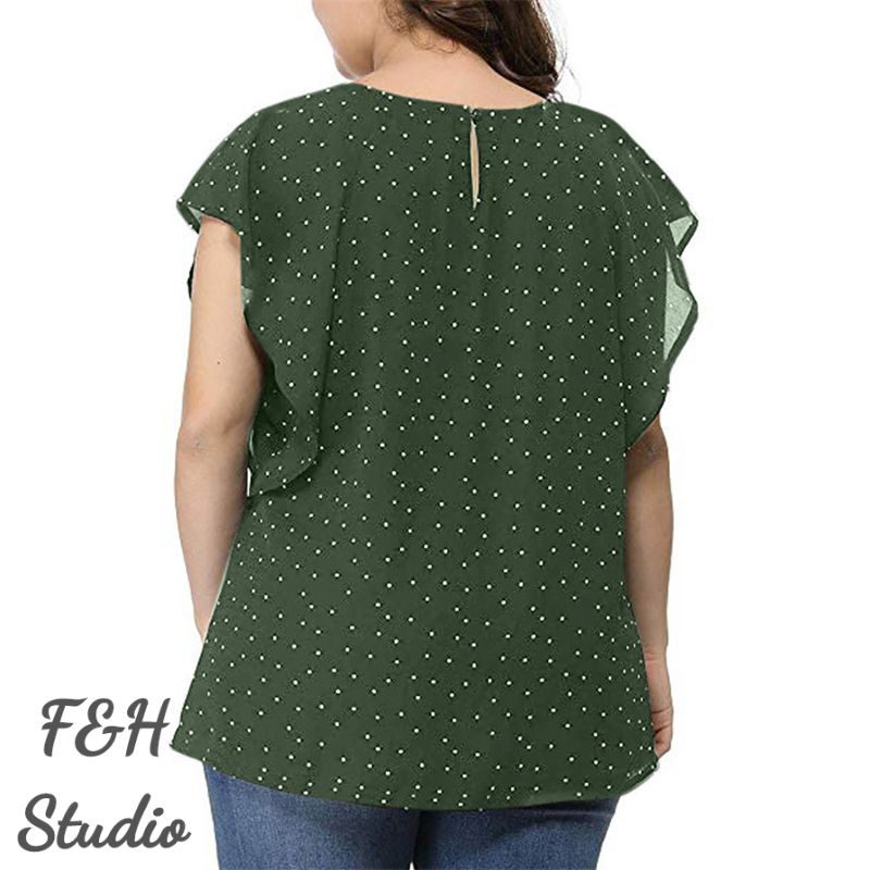 Color: Green Size: L,XL, 2XL, 3XL,4XL,5XL Model Size FYR: Model wear size XL ❤This is a round neck short sleeve big size tops plus size blouse !!❤Style:F&H 3564- L-5XL Summer Women Ruffle Sleeves Plus Size Polka Dot Blouse. Please note that slight color difference should be acceptable due to the light and screen.What You Get:1 x Blouse. FQA:1. Q: Why the item haven't shipped out? A: After you place the order, We will ship the item to the rehmie warehouse within 48 hours as soon as possible, and then rehmie warehouse will send the item to you. If you find the logistics status is"to be shipped", it may be because the rehmie warehouse has not yet been shipped. Please don't worry. 2. Q: How can I choose the size? A:Please refer to the size chart and select the appropriate size according to your actual size.If you are not sure what size to choose, please call me. 3. Pls take note that all the clothes can not be returned or exchanged.4. All dimensions are measured by hand, there will be 2-3cm reasonable deviations. (1cm=0.39 inches). Pictures are only samples for reference. Due to the differences in monitor settings, the colors shown in the photograph may not correspond 100% to those in the items themselves. 5.For transportation needs, the cloth that you've received will have a fold phenomenon. Please don't worry, this fold situation will disappear after the first time you clear or ironing.