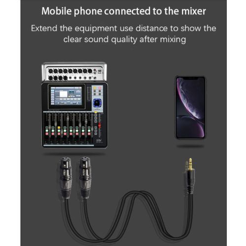 Play Song from a Cell Phone/ Tablet]: XLR male to 3.5mm stereo cable combines the left and right stereo signal from a source with 3.5mm stereo output into XLR Single Mono Feed. With this cable, you can play music from the stage using phones, Tablet or laptops. Setting up a theater in a park or yard to view movies or even doing a house party with a phone as a Dj. Now you can do it all with this setup.
