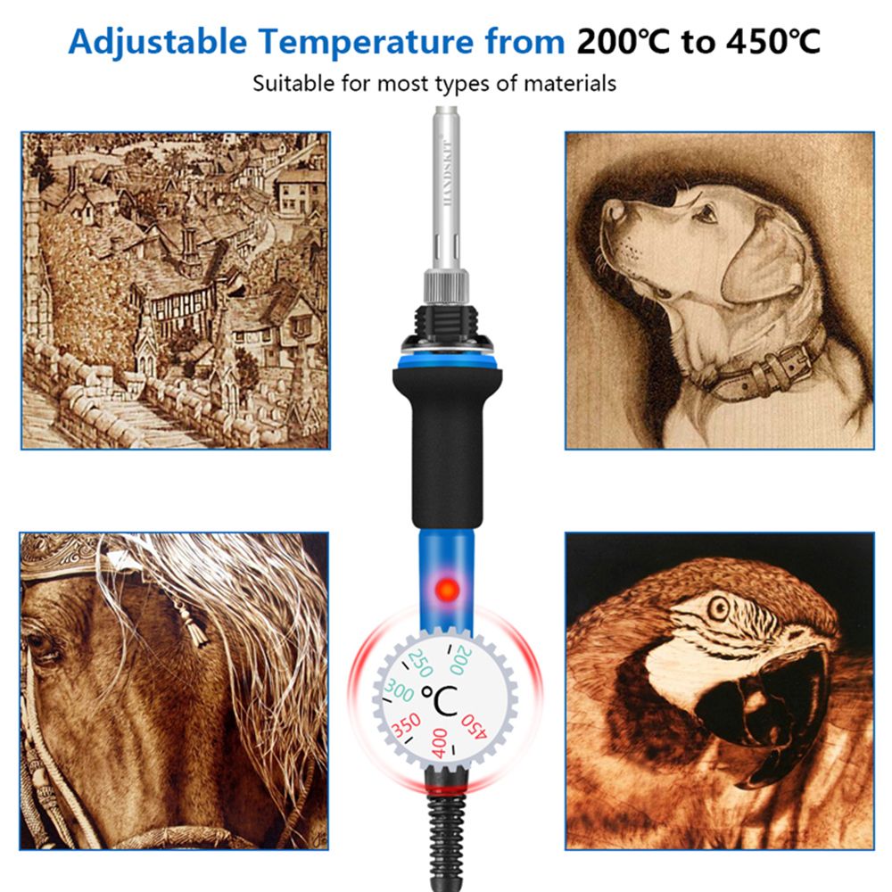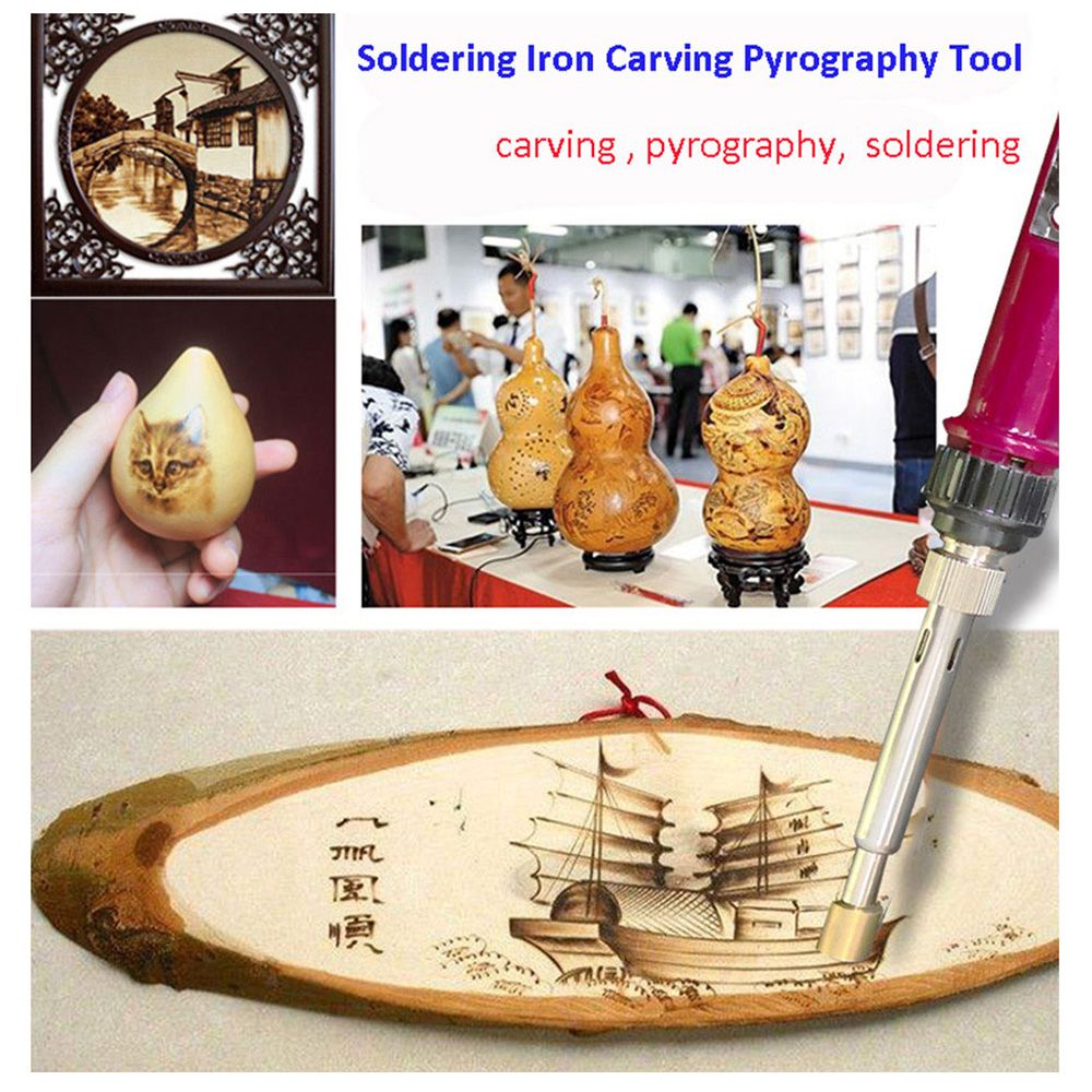 The carving pyrography tool is portable in size and weight, convenient to carry and use. Multiple sizes and specifications head, suitable for multiple material to carving. High effect and energy saving, quick heating rate, stable performance, more safe and practical in life needing.