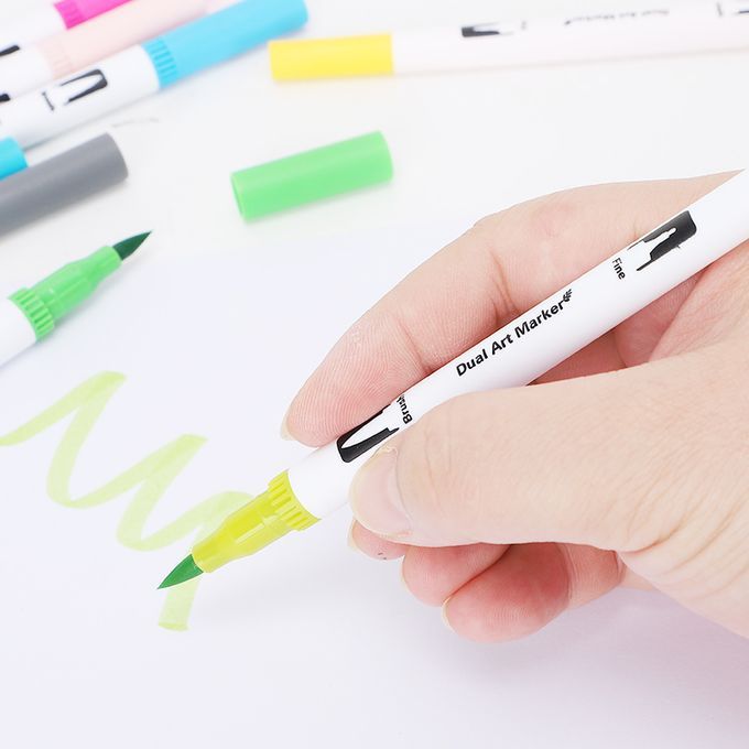 Product Description:1. Product name: 12/24/36/48/60/72/120/132 Colors Art Marker Brush Pens with a Bag2. Product Material: Plastic+ water-based color ink3.Model: 12/24/36/48/60/72/120/1324. Features: Non-toxic, odorless, acid-free waterbased5. Use: Journaling, art calligraphy, painting Flexible dual-end pens: These dual-end pens are a must for your next masterpiece. Use the brush tip for coloring, coloring and blending, and use the Fineliner tip to draw contours. You can do all this with a marker pen! It also includes replacement nibs, 3 brush heads and 2 Fineliner nibs. Gorgeous colors: You have never had such a diverse set of markers. You will get a variety of bright, highly colored colors. Each set includes primary colors and complementary colors, and they blend together perfectly to add a sense of hierarchy to your work. Safe and fast drying: easily layer and mix different colors without worrying about smudges and spots. The high-quality fiber nib is wear-resistant and not easy to split. In addition, the water-based ink is acid-free and non-toxic, making the marker set very suitable for children and adults, amateurs and professionals.