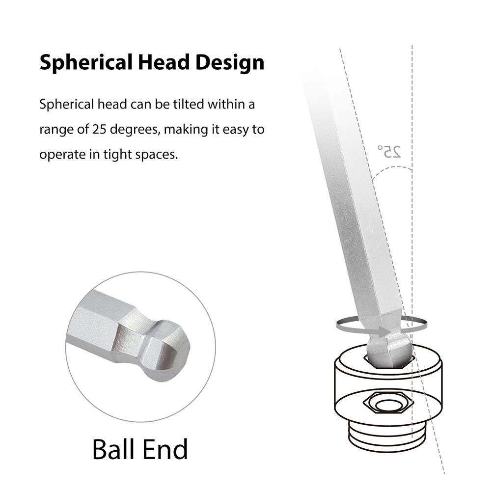 Superior Quality Tools: Made of CRV 6150# with quenching forging, it\'s hardness can reach to HRC48-57, guarantee for long time use. Designed with long arm ball end and chamfered end hex key wrench for providing greater torque, extra reach and easy access.