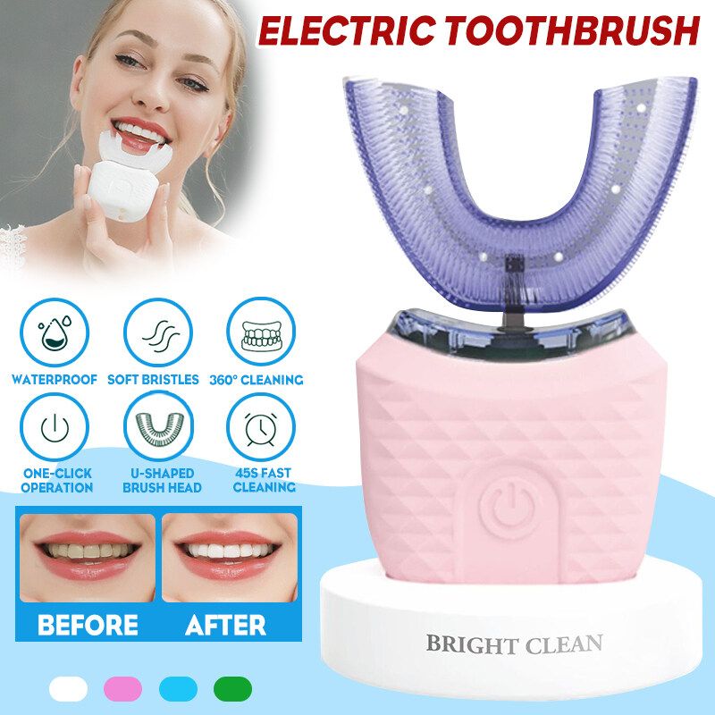 360° 3 Modes Ultrasonic Automatic Toothbrush IPX7 Waterproof USB Charging U Shape Electric Toothbrush for Travel and Household Adult Use