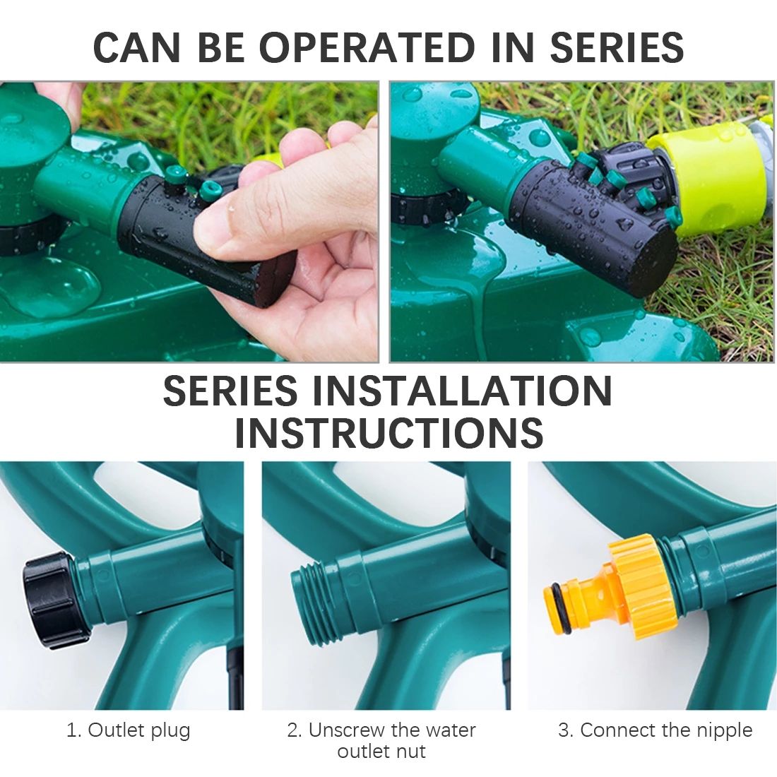 3 in 1 Garden Sprinkler System ABS plastic rotary lawn sprinkler, 360 degree rotating action, efficient, quick watering providing better coverage saving you time and water.