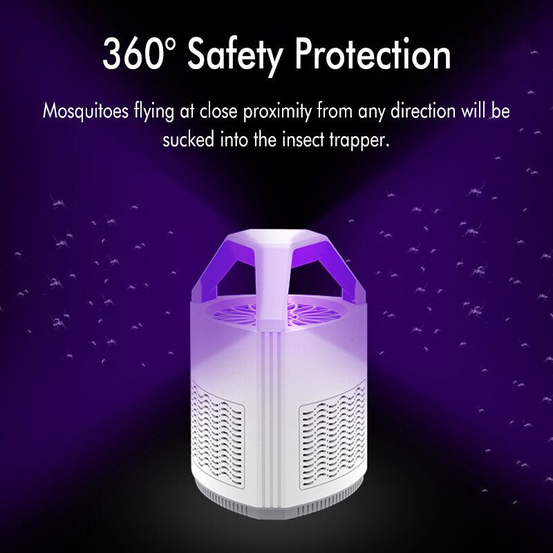 Features:* 360°Safety Protection: This Indoor Mosquito Trap Night Lamp has a 360 degree large range mosquito attraction, high speed photocatalyst sucking fan sucks passing gnats/ moths/ mosquitoes/ annoying bugs and flying insects in and holds them in the inner contained box till they die. Meanwhile, it's noiseless, does not disturb your sweet dream.* Easy to clean. Dead flies or mosquitoes get trapped in a neat hidden tray located at the bottom of the device. To clean, simply remove the tray and wash with warm water, let it air-dry.* Purple lighting can be also used as a night light.* Wide Application: Great for indoor use, such as home, living room, office, hotel, kitchen, restaurant, cabin, school etc.