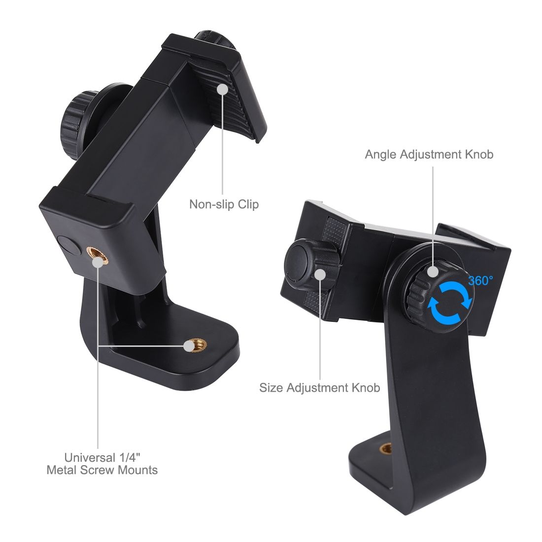 PULUZ 360 Degree Rotating Universal Horizontal Vertical Shooting Phone Clamp Holder Bracket for iPhone, Galaxy, Huawei, Xiaomi, Sony, HTC, Google and other Smartphones