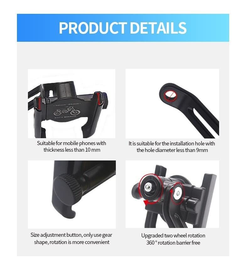 About this item: This Bike Phone Holder body is made of premium aluminum alloy material. Durable and touch struture can securely hold the phone even on the uneven and bad road conditions.