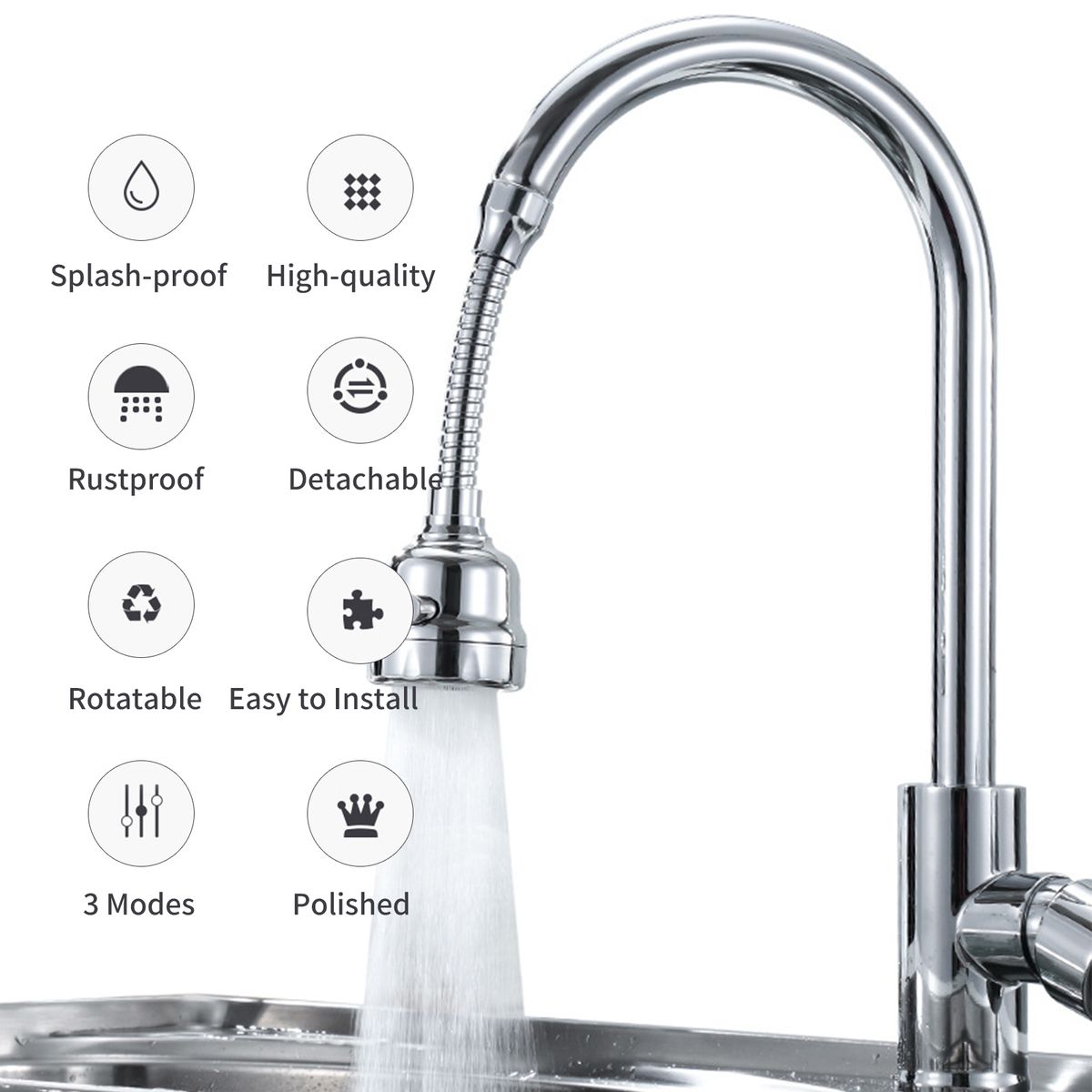 [Splash-proof]Kitchen faucet head can control the water flow to prevent splashes, and make you feel more convenient in daily life.