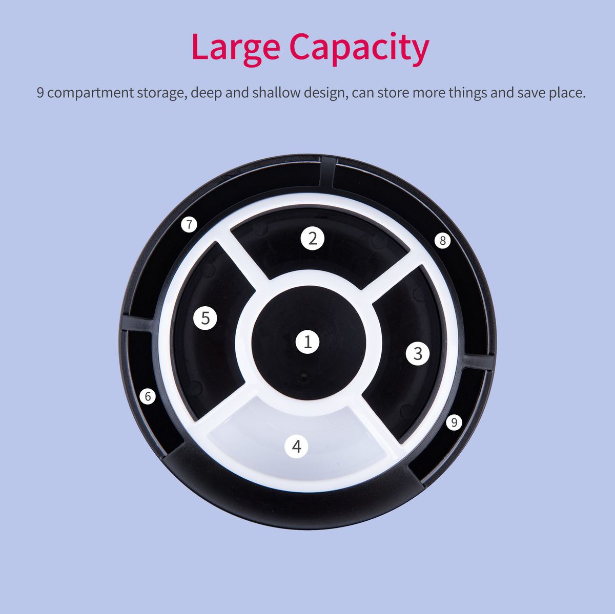9 compartment storage, deep and shallow design, large capacity, can store more things.