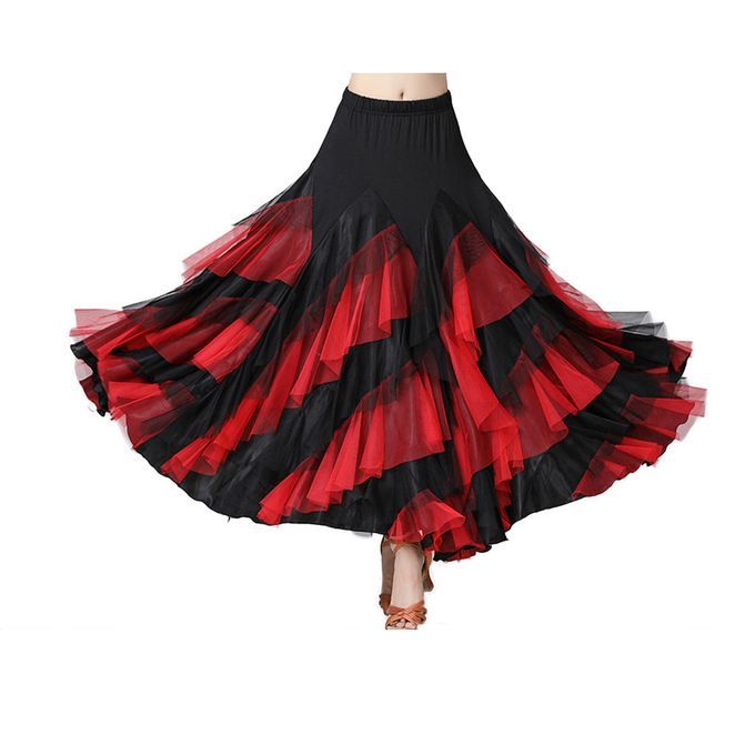 Flamenco Ballroom Waltz Dance Big Swing Skirt Womens Modern Costumes Black Red