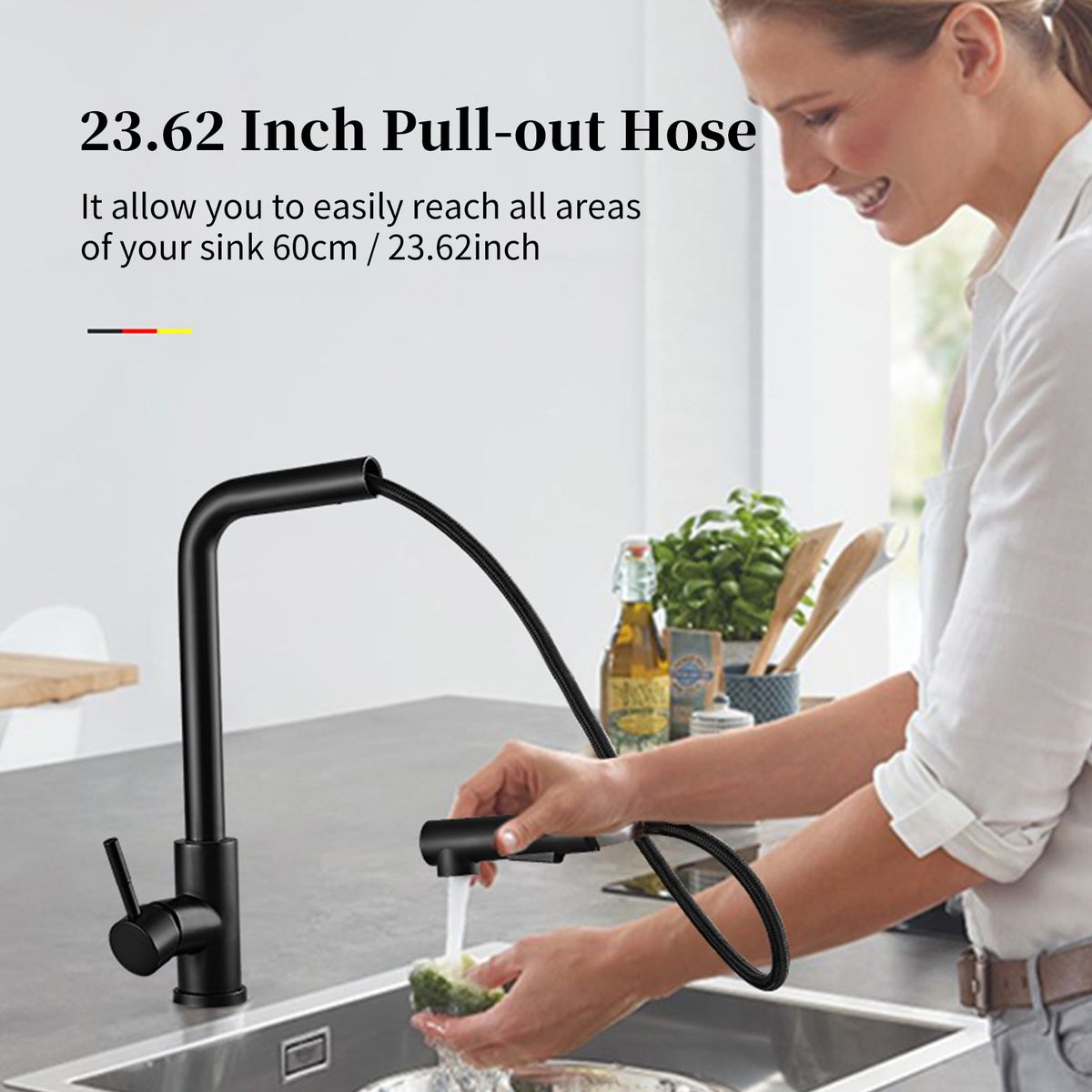 [Pull Out Hose]Kitchen sink faucets with an extended 23.62inch pull-out hose allow you to easily reach all areas of your sink.