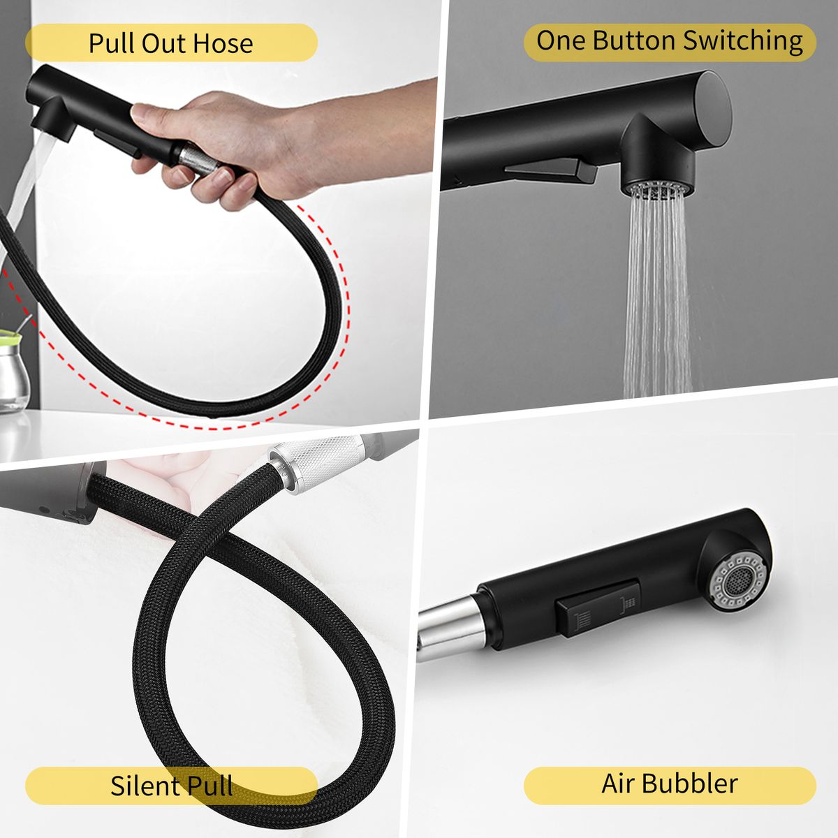 [Simple Style]L-shaped pull-out faucet enhances the modern kitchen with its crisp, geometric lines and standout style.