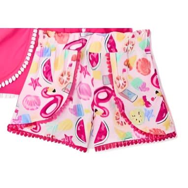 Buy 365 Kids Girls Pom Pom Woven Print & Chambray Shorts- 2 Pieces - Pink in Nigeria