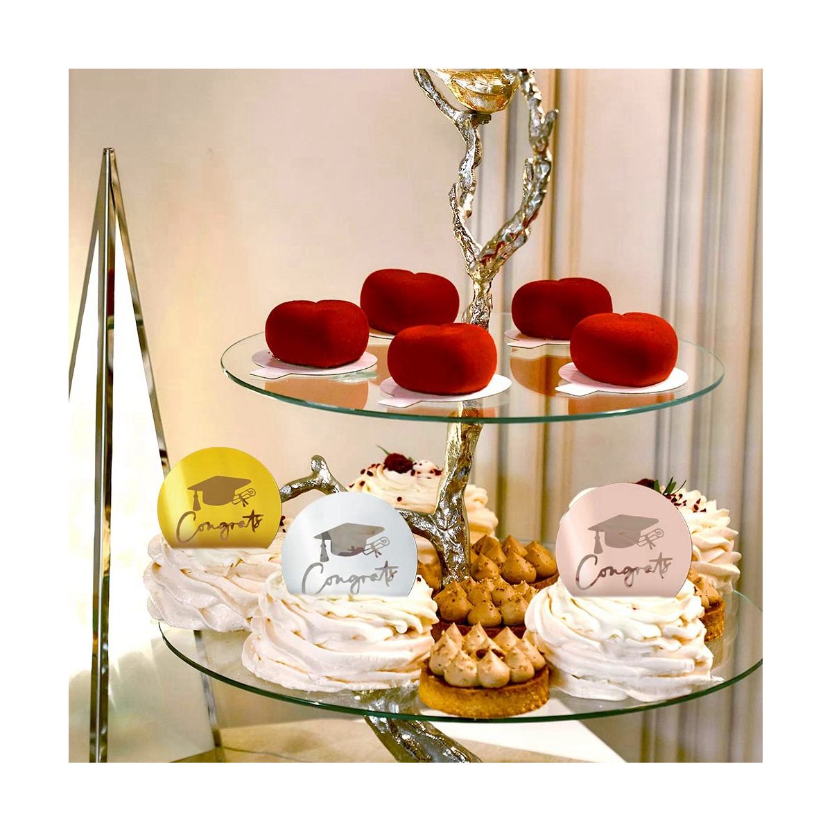 [Wide Range Of Uses] Acrylic cake disc is perfect for making cakes, ice cream, cupcakes, muffins, fruit, cheese, graduation party or graduation celebration food; suitable for all kinds of graduation parties in to celebrate kindergarten, elementary, middle school, high school, college and university graduation.