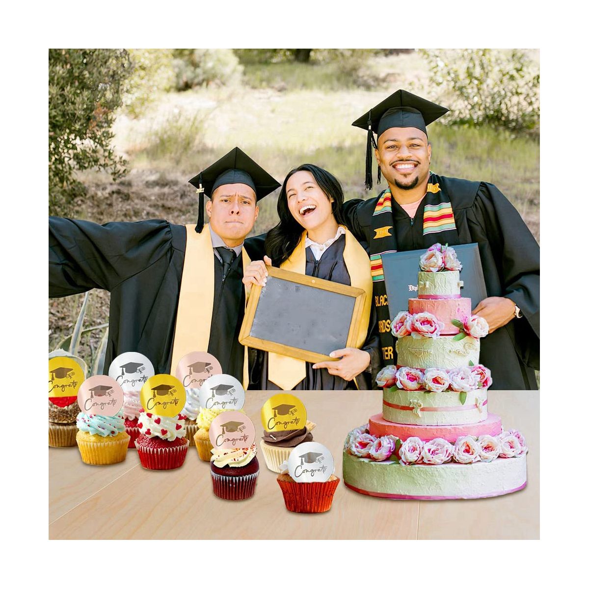 [Round Cupcake Toppers] We will you with 3 color (, gold, silver) cupcake toppers, 12 in one style; plenty of round cupcake toppers for your graduation party cakes or cupcakes Cake decorating request.