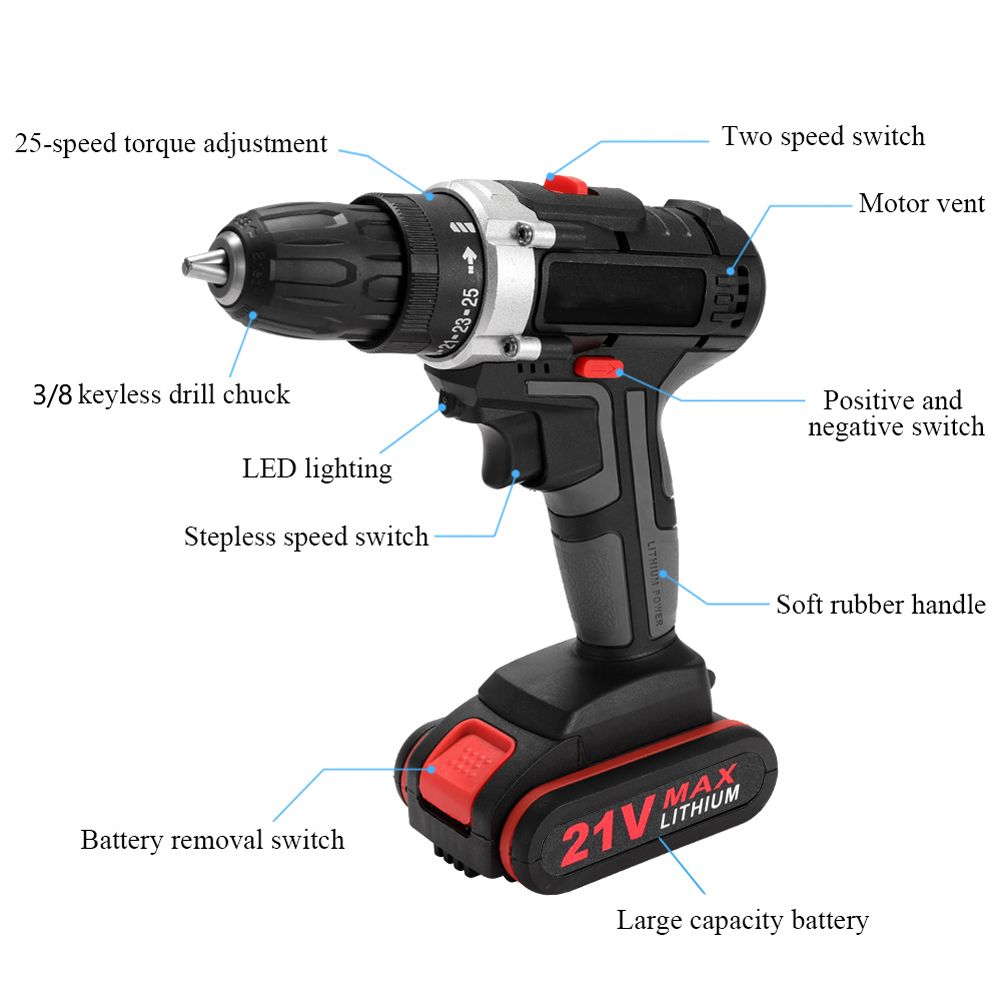 Electric drill size: 185 * 180 * 55mm / 7.3 * 7.1 * 2.2in