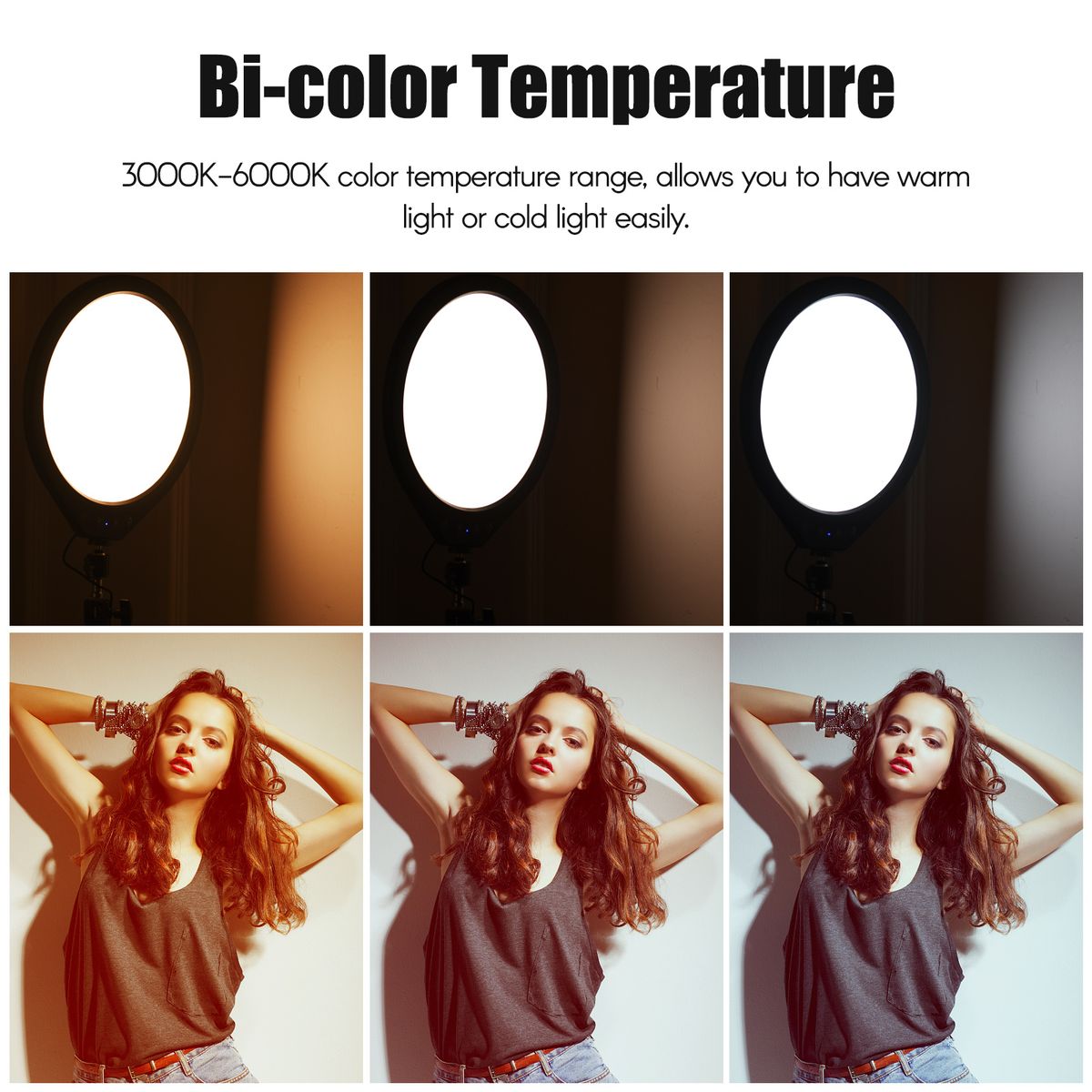 【3000K-6000K Bi-color Temperature】3000K-6000K color temperature range, supports 3 light modes(cold light, natural light and warm light), which meets your needs of different color lighting effects quickly.