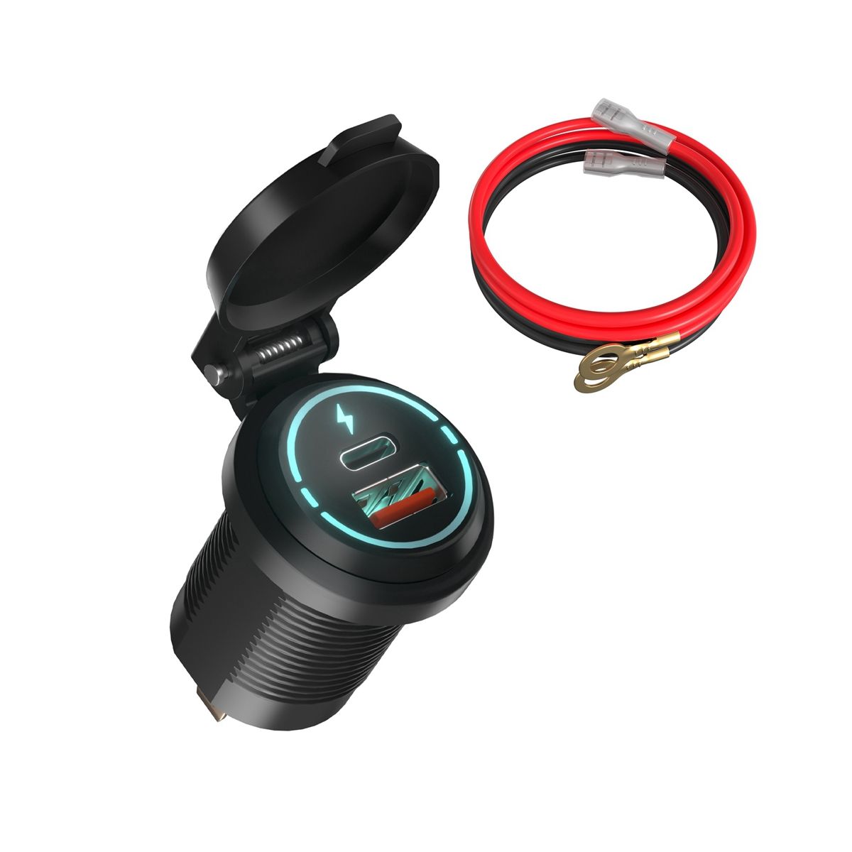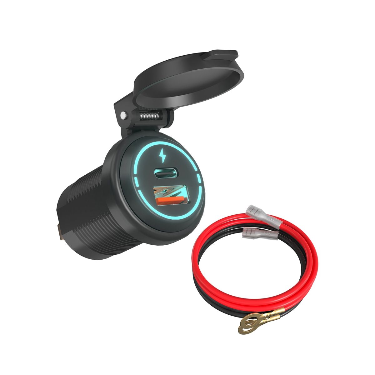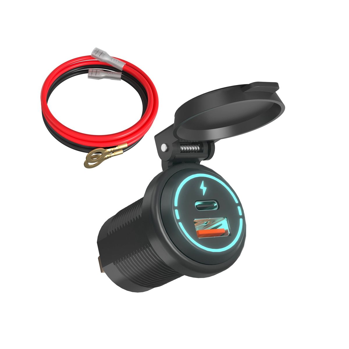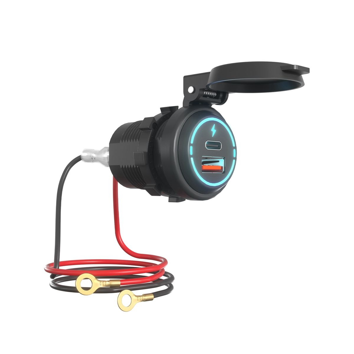 The USB charger is equipped with a fully sealed protective cap which is 100% waterproof and dustproof IP66 waterproof suitable for ships boats and motorcycles