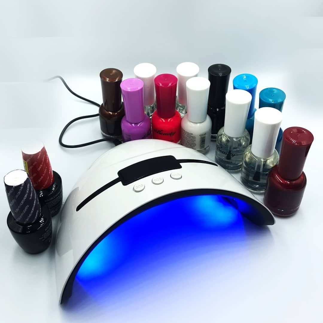 36W UV lamp for gel nails is equipped with 6 UV/LED beadsSuitable for all UV/LED nail polishes, such as base coat, top coat, color gel, builder gel, acrylic, hard gel, sculpture gel, gem 33glue and many others6Nail dryer has 3 timer settings: 30, 60 and 90 seconds. Put your hands / feet in and the light turns on. Remove hands/foot and the light goes off. 180° angled LEDs, no dead corner, cure 5 fingernails or toenails evenly and at the same time.