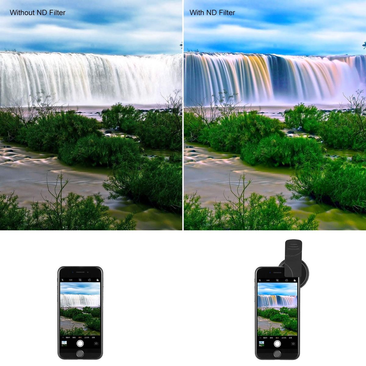 ADJUSTABLE ND FILTER: Reduce the amount of light reaching the film without affecting the color; Can be used to enable slower shutter speeds; Adjustable form ND 2 to ND 400 to meet your different need