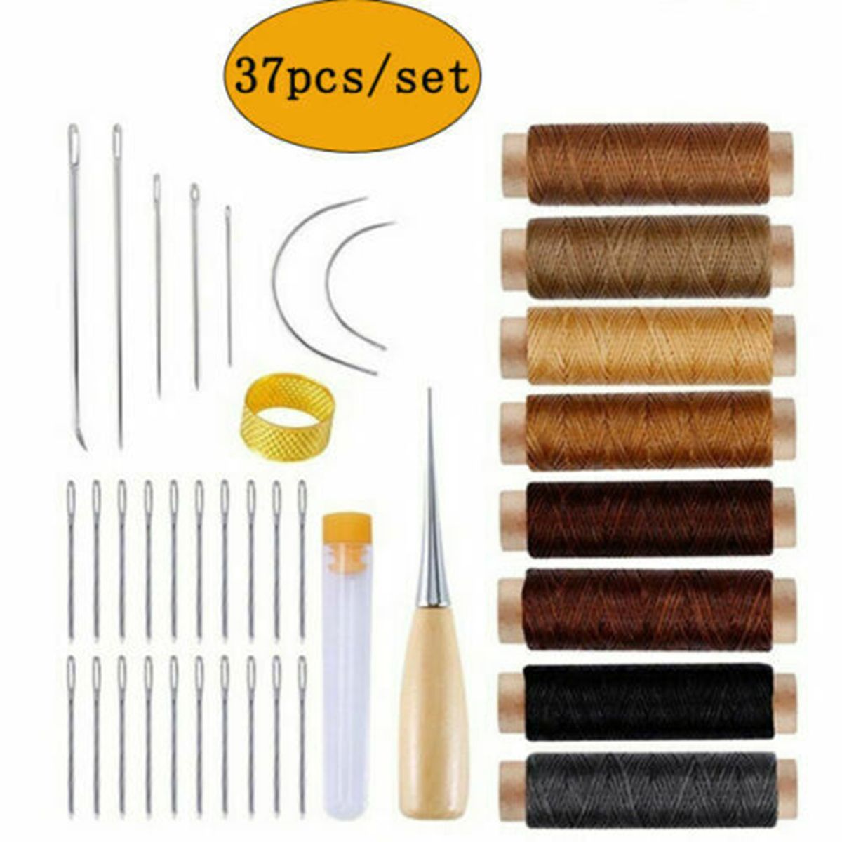 37Pcs leather sewing tools kit includeds 7 sewing needles, 8 leather waxed thread cords, 1 stitching awl, 1 sewing thimble and 20 blunt needles. These basic tools can meet your needs of DIY leather.
