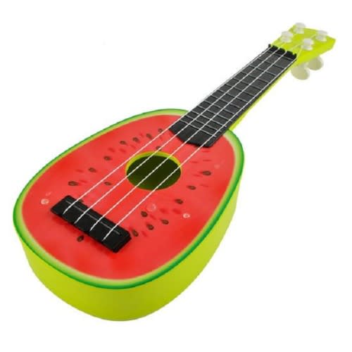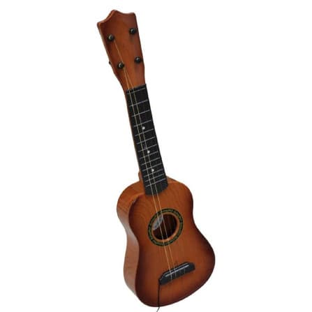 4 String Classical Guitar, Which Unlike Most Childrens Guitars, It Is Fully Functional With All The Tuning Keys And Playable. This Children's sized Acoustic Guitar Toy is ideal for children to get the correct posture and learn how to play different notes. Helps kids have fun and stimulate and develop their talent and interest. This Guitar Is 18 Inches In Length And Features A Rosewood Body This Acoustic Guitar Makes A Great Gift For Kids And Is A Great Value For The Money ! Comes With Pick And A Spare String In Its Original Factory Box. Please Be Sure This Is The Size You Are Looking For. Lightweight, easy to hold, with nice appearance Ideal for birthday gift, or just as play-fun toy Material: Plastic (with wooden effect/decoration) Size: 18" x 6" x 2", Color: Mahogany and Black Notice: This is not a professionally manufactured Guitar, just a toy for Children. This is an Ukulele Brand Guitar.