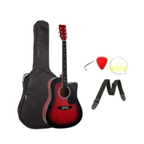The Redburst 6 Strings Acoustic Guitar is an attractive, entry-level acoustic guitar, designed to serve as an affordable, yet high-quality, full-size guitar for new and intermediate players. This complete package comes included with a Strap, Strings and Bag to protect your guitar.Premium Build QualityFeaturing a thinline, cutaway body, designed for comfort and easy top-fret access. It is a compact guitar that makes a great companion when you're on the road.VersatileA truss rod that allows you to correct for the effects of weather on the guitar and keep the neck straight and the action height the neck can be adjusted.