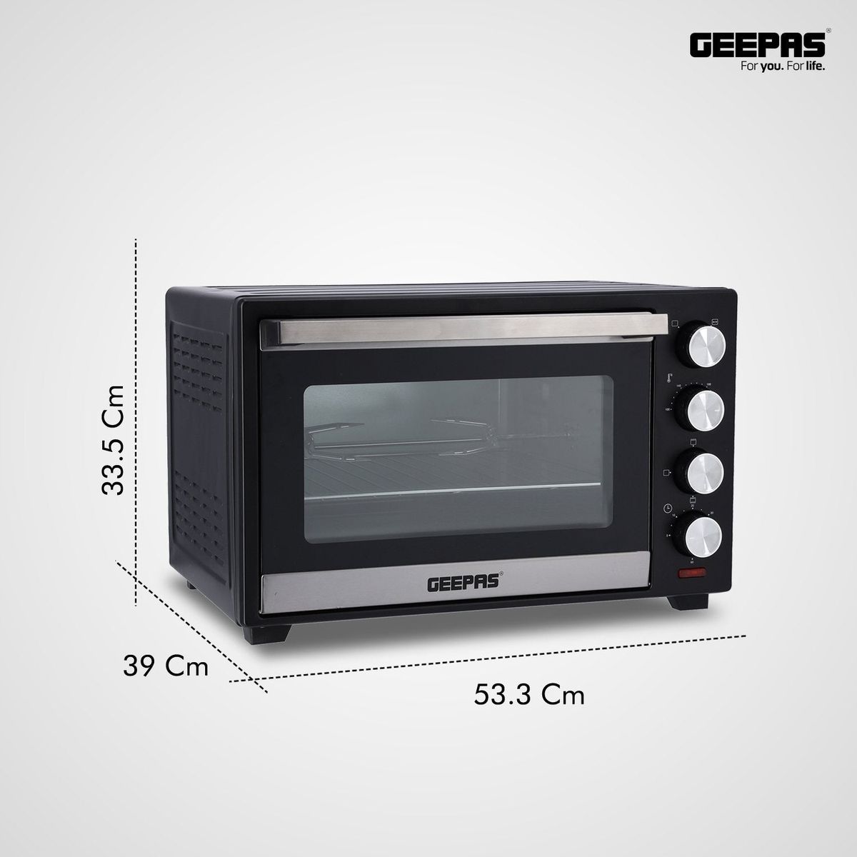 - - The set of electric oven includes all the accessories you need to guarantee the finest results, 1 x bake/food tray, 1 x grill bake tray/wire rack, 1 x tray handle, 1 x rotisserie fork, and 1 x rotisserie handle. All these accessories are easy to install, remove and wash.