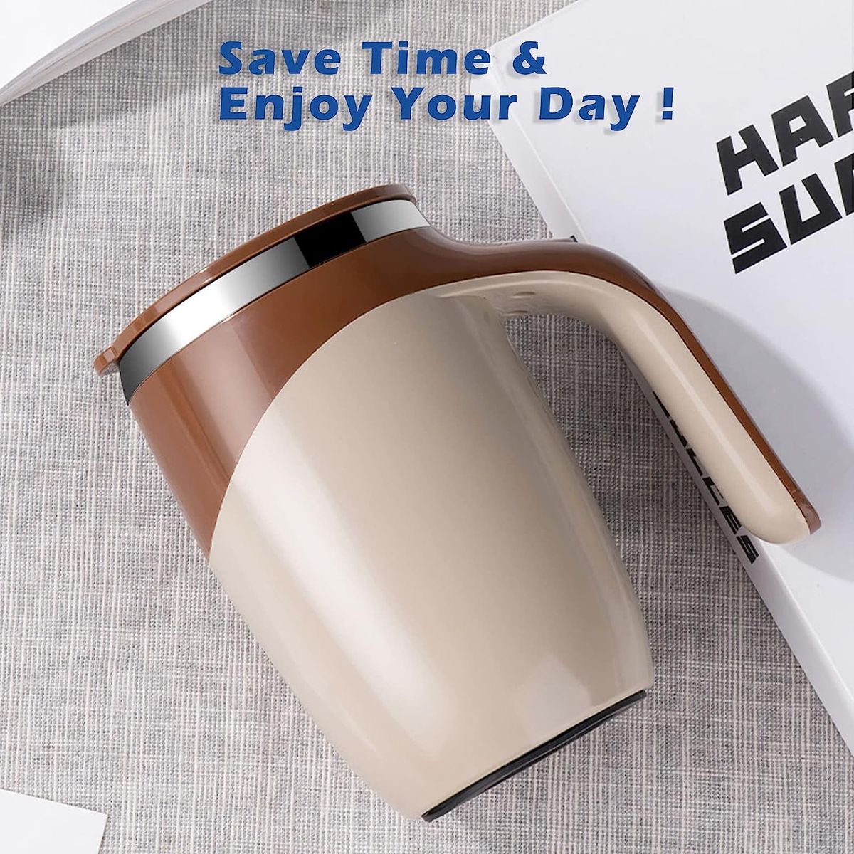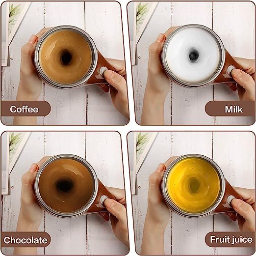 Unique small magnet design. Cup body at the bottom of the built-in magnetic device to drive the magnetic rods at high speed to stir the cup of drinks. A premium quality fluid motor works promptly upon the press of a button.Makes the perfect mug for travelling while sipping your morning coffee. Cute cup keep warm about 3 hours. Designed to work great when you're on-the-go. Solid lid reduces any spill even while stir function is on. Keep bottom lid on tight for best results. Ideal for coffee, tea, hot chocolate, milk, protein shakes, lemonade, bouillon and many other light mix drinks that you can stir.The magnetic stirrer at the bottom of the cup can be quickly removed and placed back for easy cleaning, but do not use a dishwasher or This mug is made of food grade ABS plastic materials assures years of leak free and safe stirring. making it safe to use for drinking. Powered by