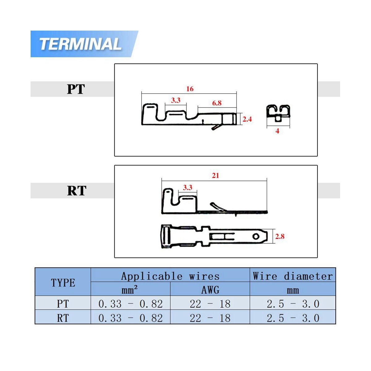 Terminal width 28 mm