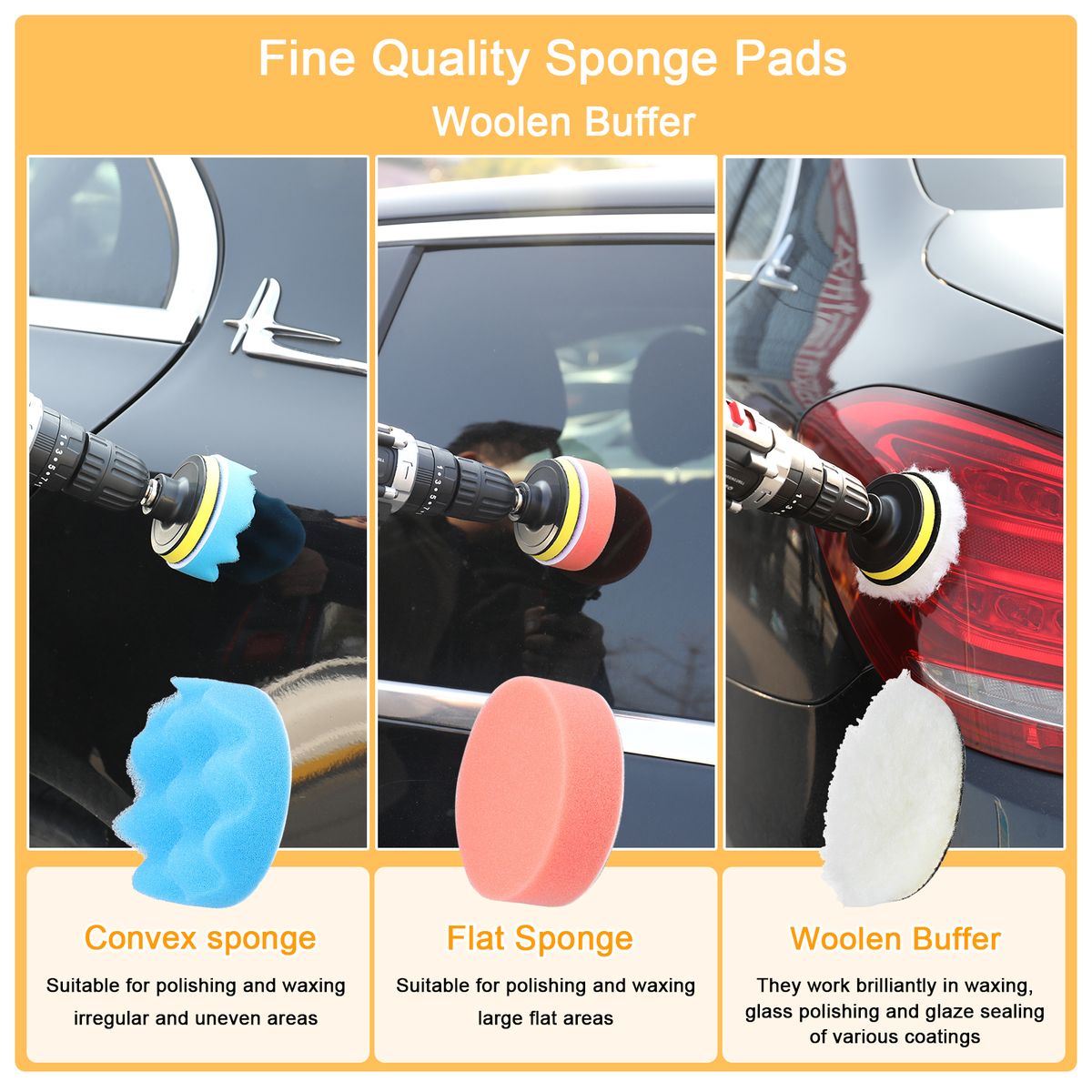 Woolen Buffer: They work brilliantly in waxing, glass polishing and glaze sealing of various coatings to cleans and enhance their gloss.