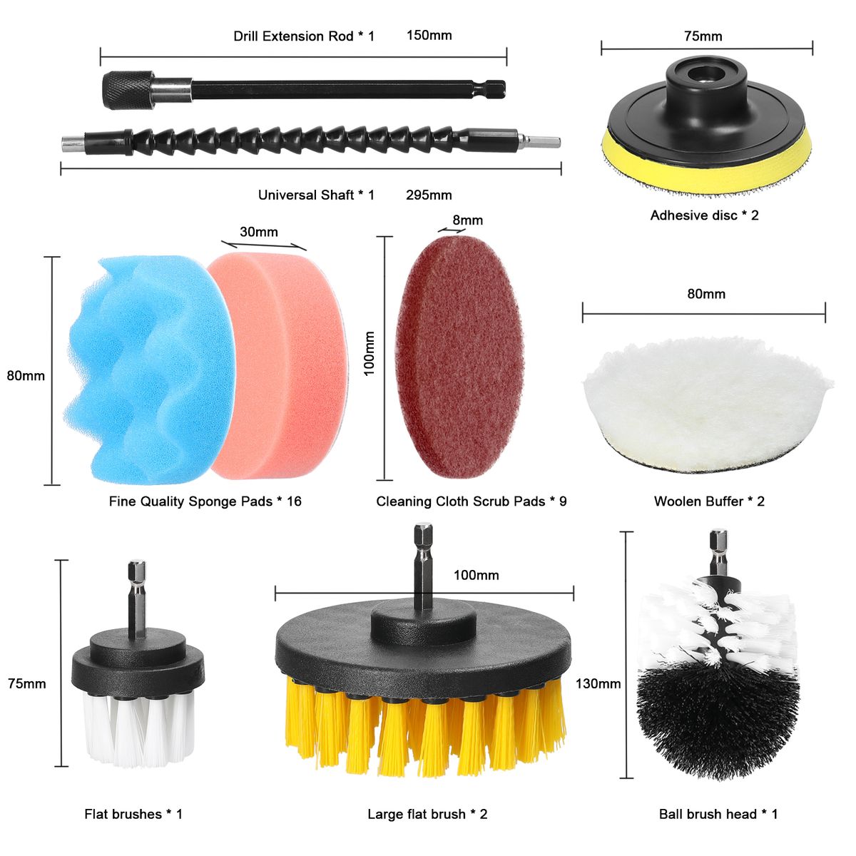 Fine Quality Sponge Pads: 16 sponge pads with different colors and softness to increase the applicability of cleaning, suitable for polishing rough and small areas. With fine porosity, high elastic, and high water absorb ability, you can add polishing liquids (paste, powder) to achieve better polishing effect.